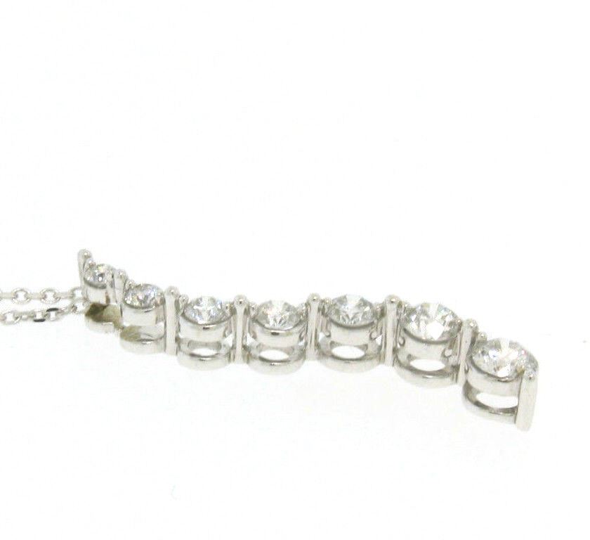 NEW 14K White Gold 0.50ctw 7 Round Diamond Wavy Journey Pendant w/ 16" WG Chain. Please see photos and description for all available information. A new solid 14k white gold wavy journey pendant necklace, featuring 7 round brilliant cut natural diamonds (F - SI1; 0.50ctw). The pendant weighs a total of 2.1 grams, measures 25.38x5.51mm including the bail, and 16 inch cable link chain