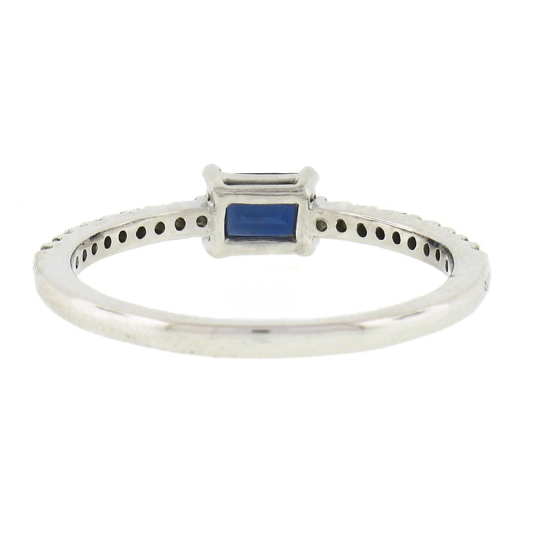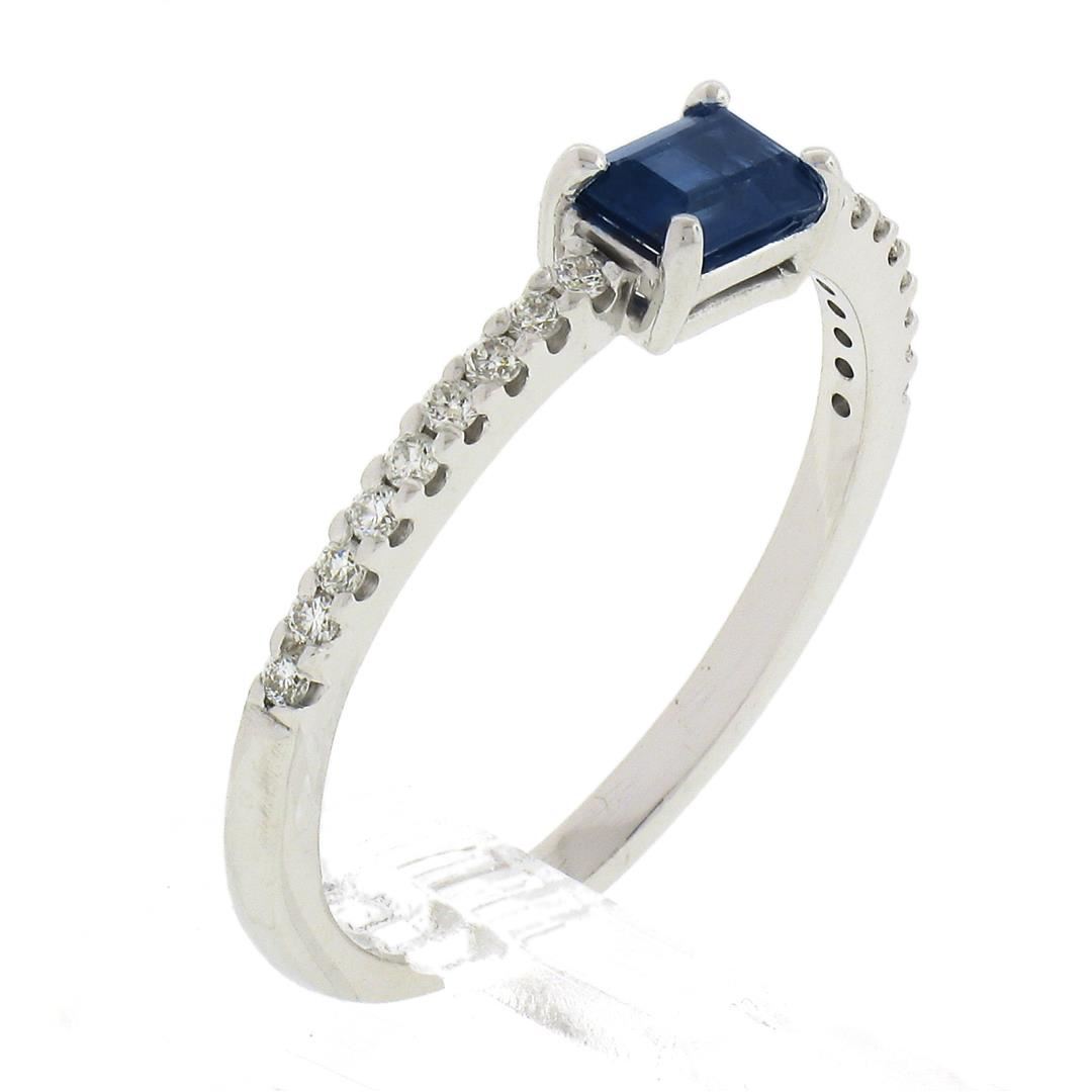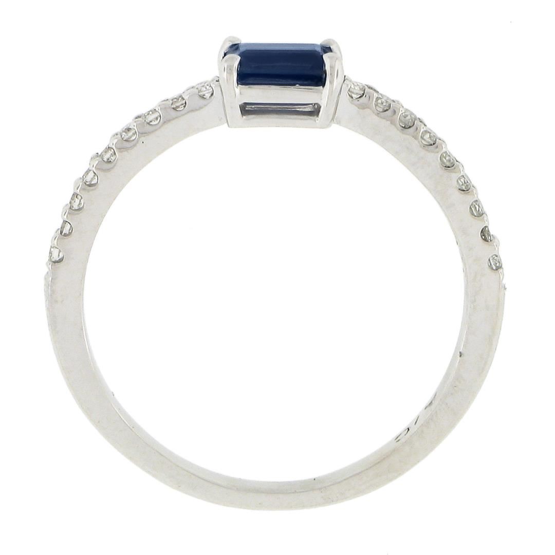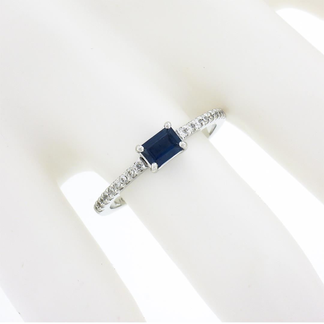 NEW 14K White Gold 0.62ct Rectangular Step Cut Sapphire Solitaire & Diamond Ring