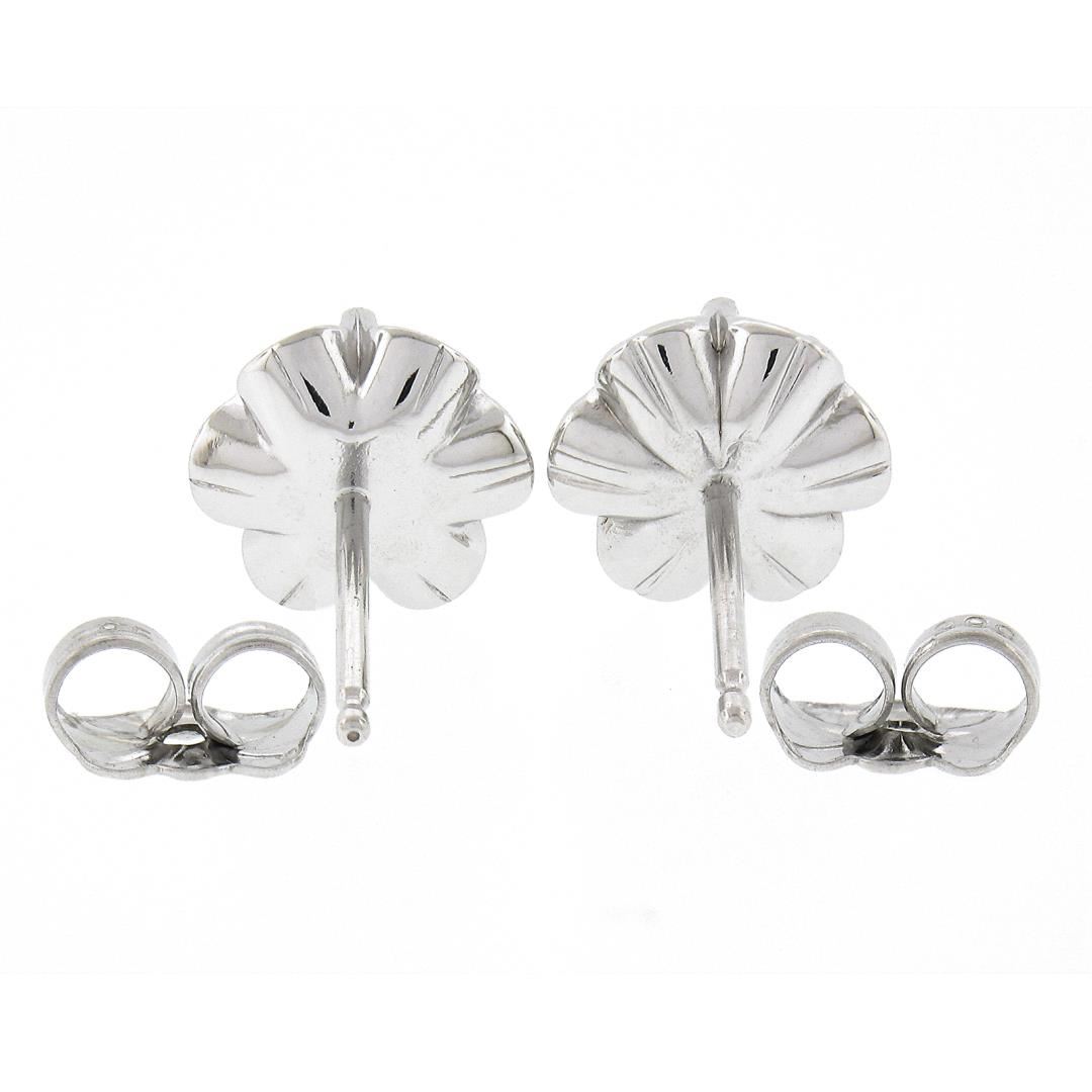 A new solid 14k white gold flower stud earrings, with 2 old European cut natural diamonds (H/I - VS1/VS2 ; 0.85ctw). The earrings measure approximately 7.9mm in diameter and weigh a total of 1.56 grams.