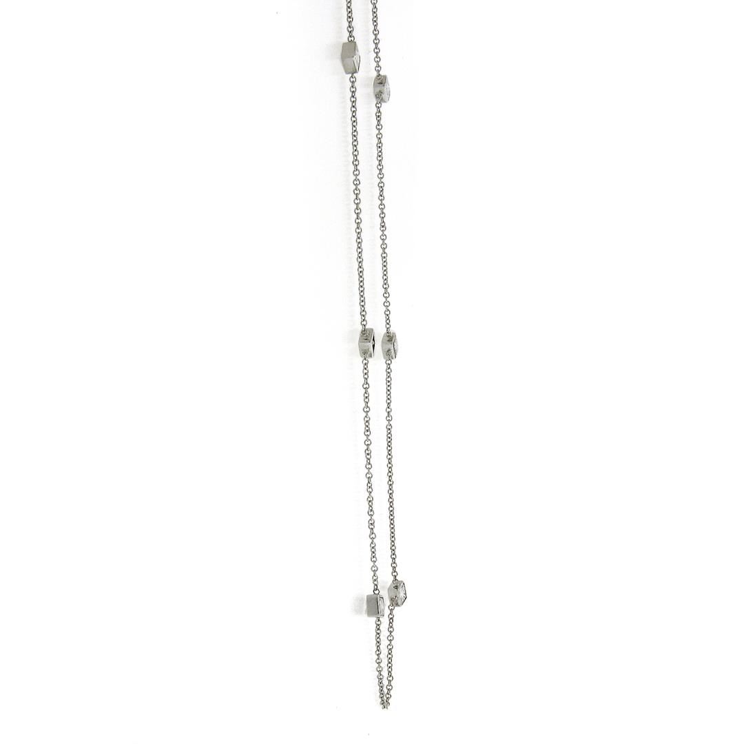 NEW 14K White Gold 1.31ctw Station Princess Diamond by the Yard Chain Necklace