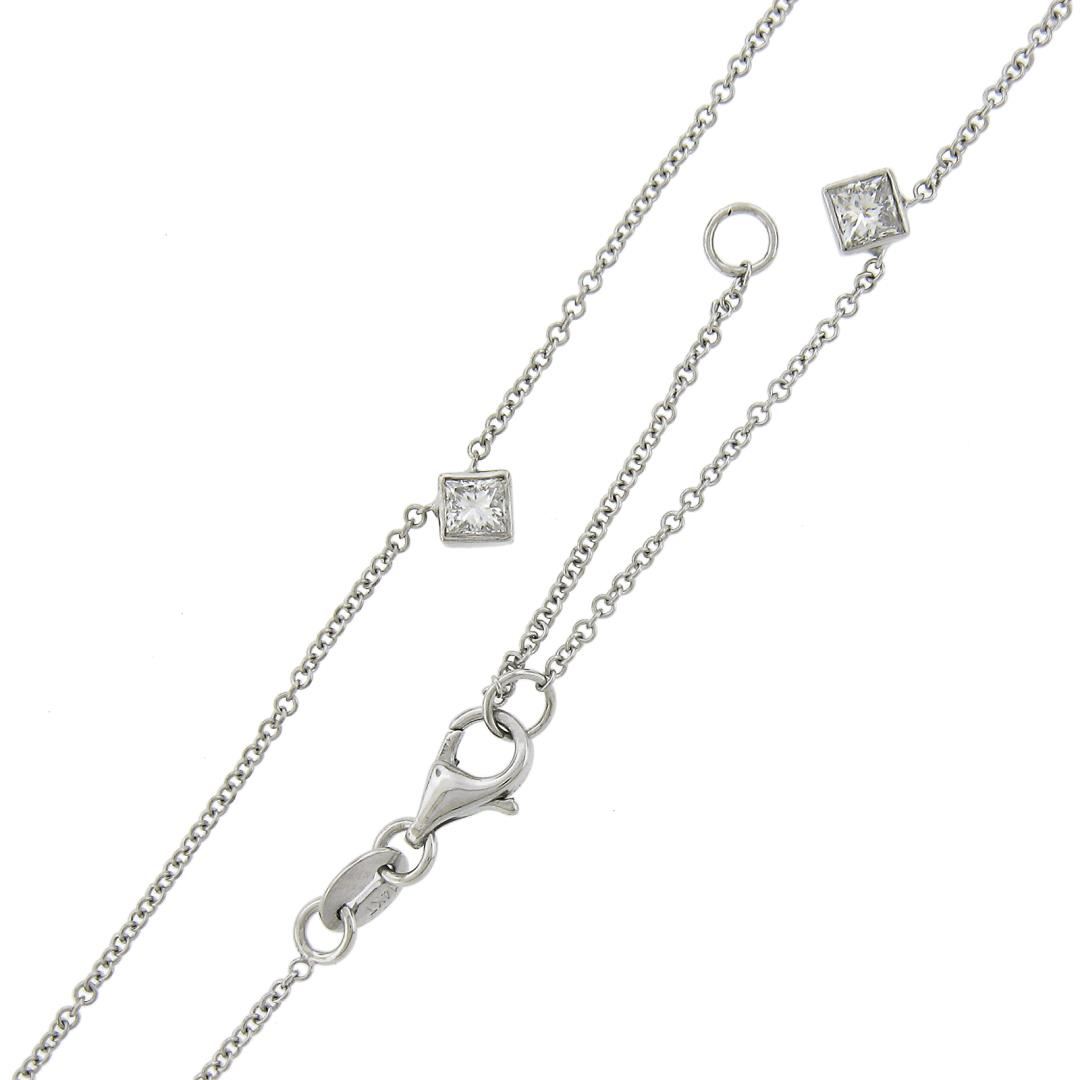 NEW 14K White Gold 1.31ctw Station Princess Diamond by the Yard Chain Necklace
