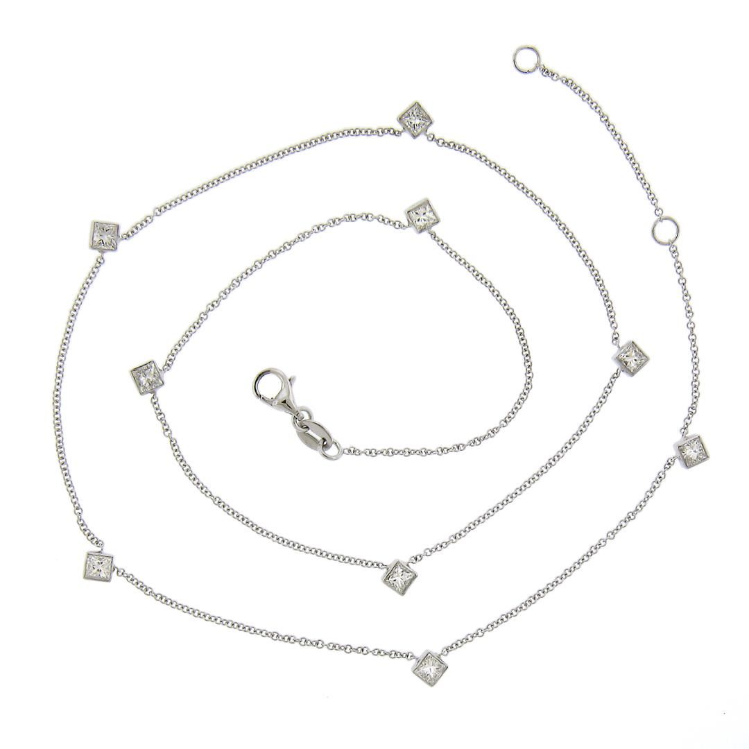 NEW 14K White Gold 1.31ctw Station Princess Diamond by the Yard Chain Necklace