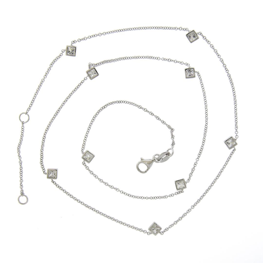 NEW 14K White Gold 1.31ctw Station Princess Diamond by the Yard Chain Necklace