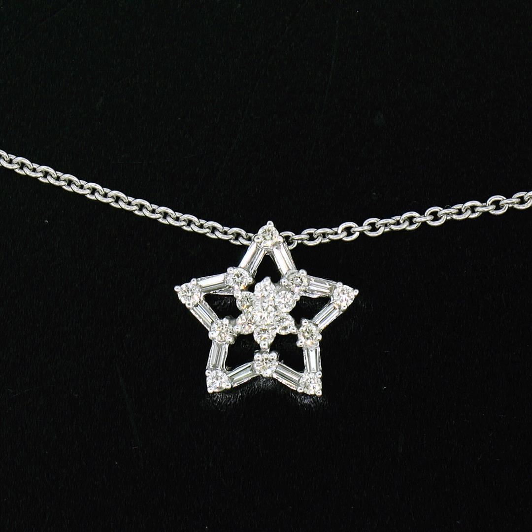 NEW 14K White Gold 16" 0.64ctw Round Baguette Diamond Open Star Pendant Necklace. Please see photos and description for all available information. A new solid 14k white gold open star pendant necklace, featuring 9 baguette cut natural diamonds (F- VS1; 0.