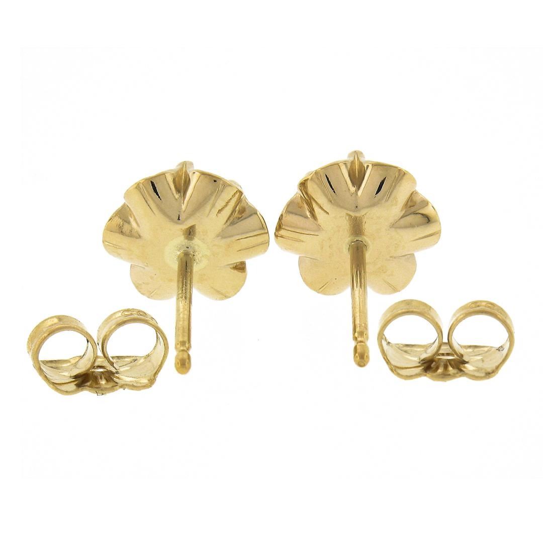 A new solid 14k yellow gold flower stud earrings, featuring 2 old European cu natural diamonds (H/I - VS1/VS2; 0.76ctw). The earrings measure approximately 7.9mm in diameter and weigh a total of 1.57 grams.
