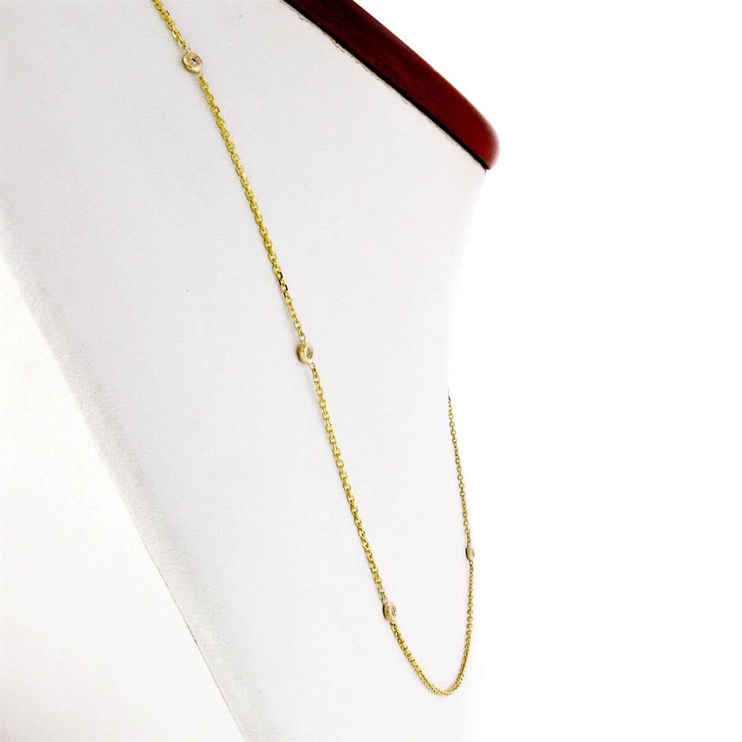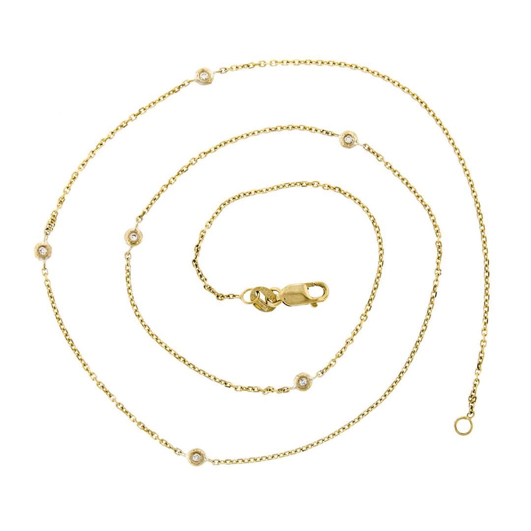 A new solid 14k yellow gold by the yard chain necklace, with 6 round brilliant cut natural diamonds (G/H- VS2; 0.12ctw). 16 inch cable link chain, 1.97 grams total weight.