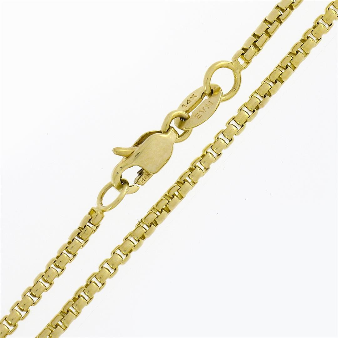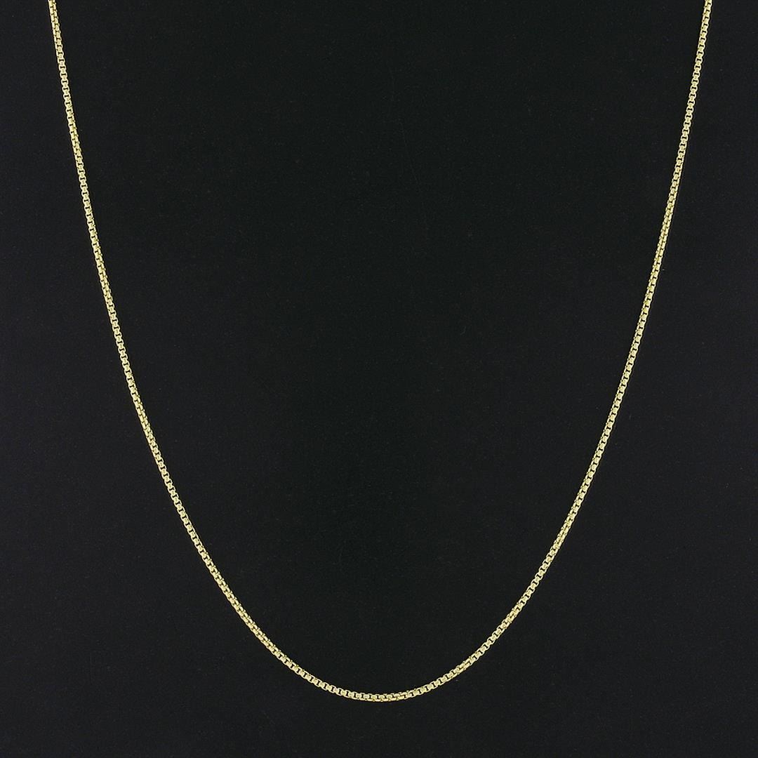A new solid 14k yellow gold chain necklace. It weighs a total of 6.71 grams, measures 1.55mm wide, and measures 18 inches in length.