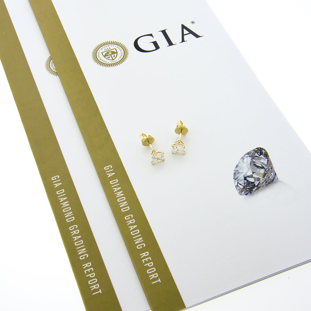 A new solid 14k yellow gold stud earrings, with 2 GIA graded square princess cut natural diamonds ( H/I - VS1/VS2 ; 2.14ctw). The earrings measure approximately 8.6x8.6mm and weigh a total of 1.54 grams. Comes with all original relevant certifications.