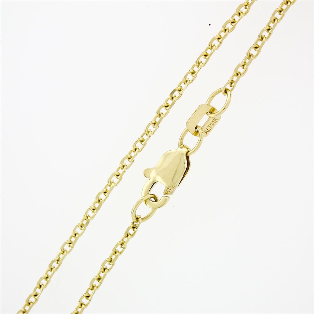 A new solid 14k yellow gold pendant necklace. with 1 cushion cut natural citrine (21.40x17.66mm). The pendant weighs a total of 10.60 grams, measures 21.40x17.66mm including the bail, and 18.5 inch fine beveled cable link chain.