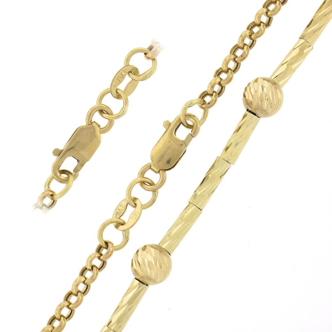 A new solid 14k yellow gold link bracelet. It weighs a total of 2.50 grams, measures 4.8mm wide, and measures 7.75 inches in length.