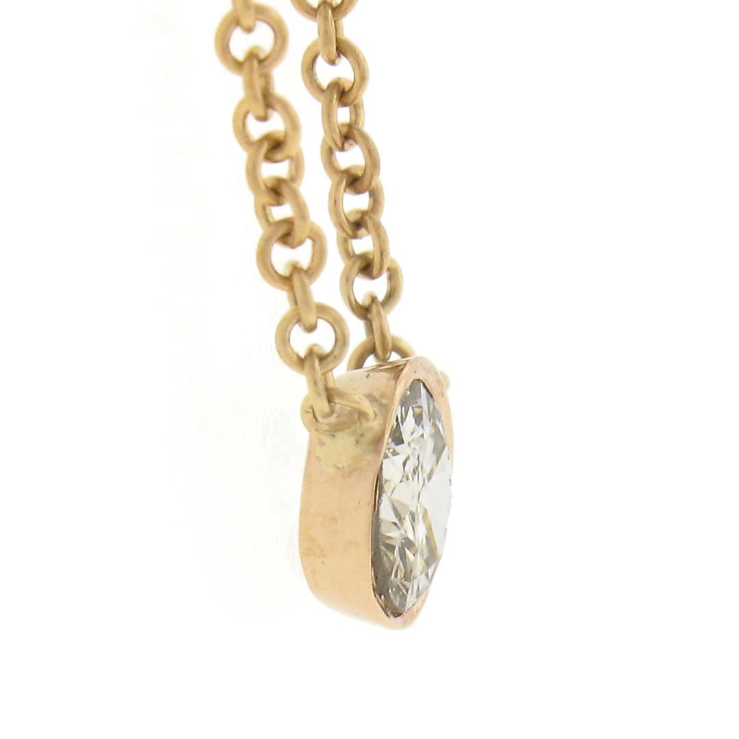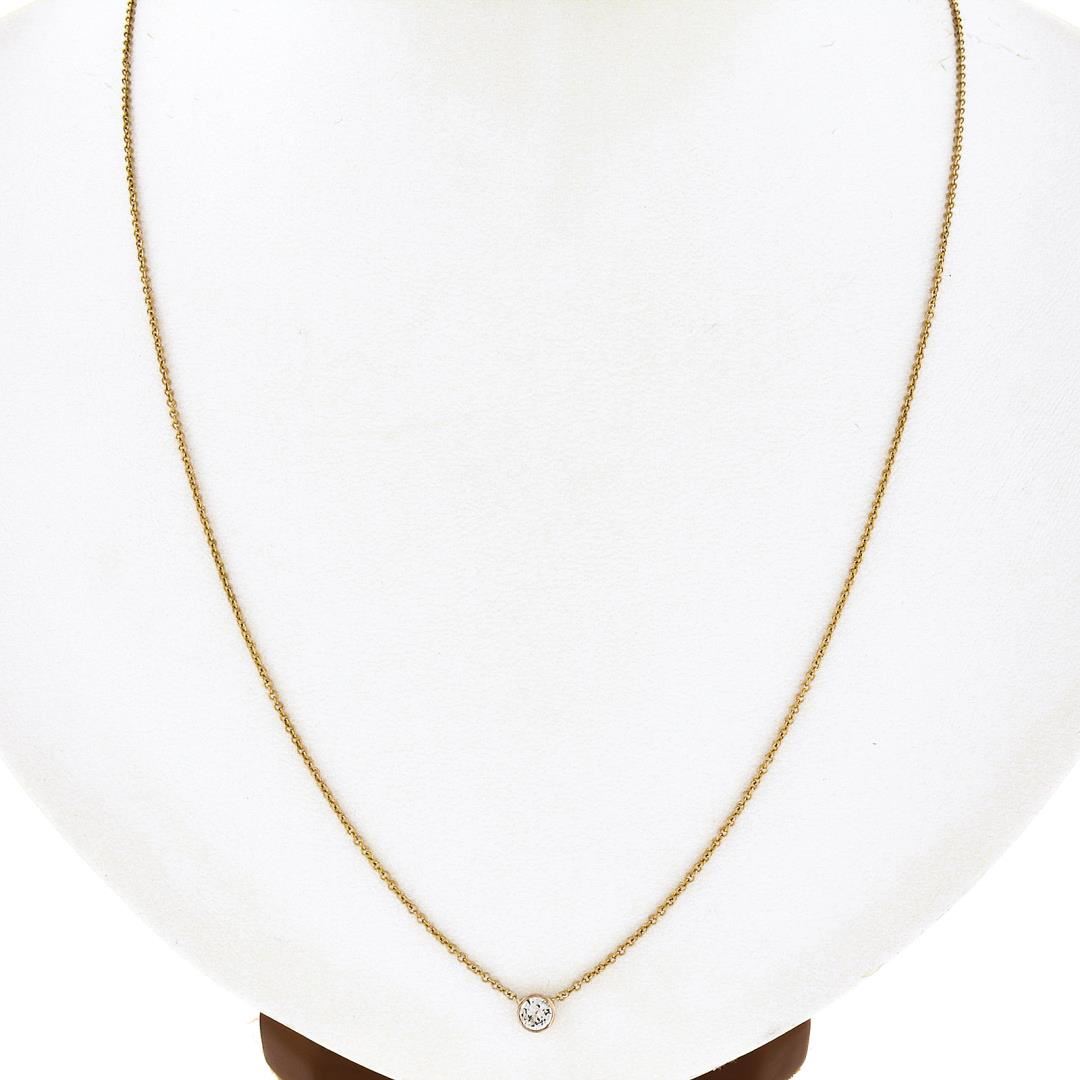 A new solid 14k rose gold solitaire pendant necklace, with 1 round cut natural champagne diamond (I1 ; 0.15ct), Adjustable 16 or 18 inch cable link chain, 1.74 grams total weight, pendant measures 4.3mm in diameter.