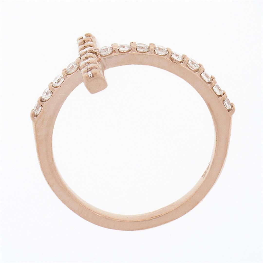 A new solid 14k rose gold cross ring with 20 round brilliant cut natural diamonds (G/H - VS1/VS2 ; 0.40ctw). The ring is size 6.5, weighs a total of 2.65 grams, and measures 13.30mm wide.