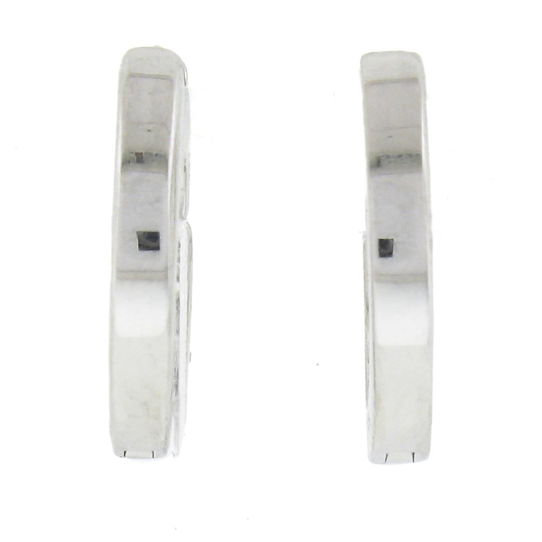 A new solid 14k white gold hoop earrings, with 14 round brilliant cut natural diamonds (F/G - VS1/VS2 ; 0.28ctw). The earrings measure approximately 12.3x1.9mm and weigh a total of 1.68 grams.