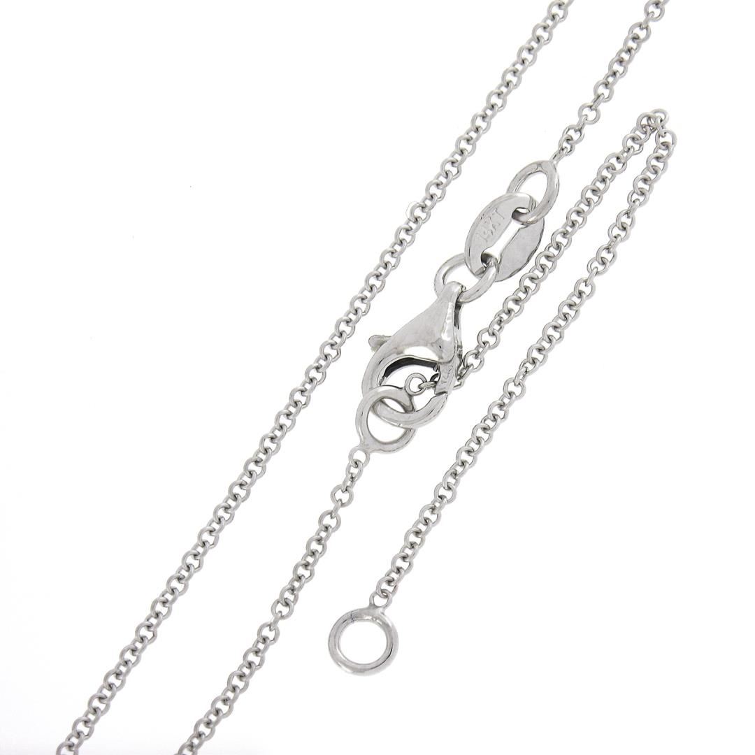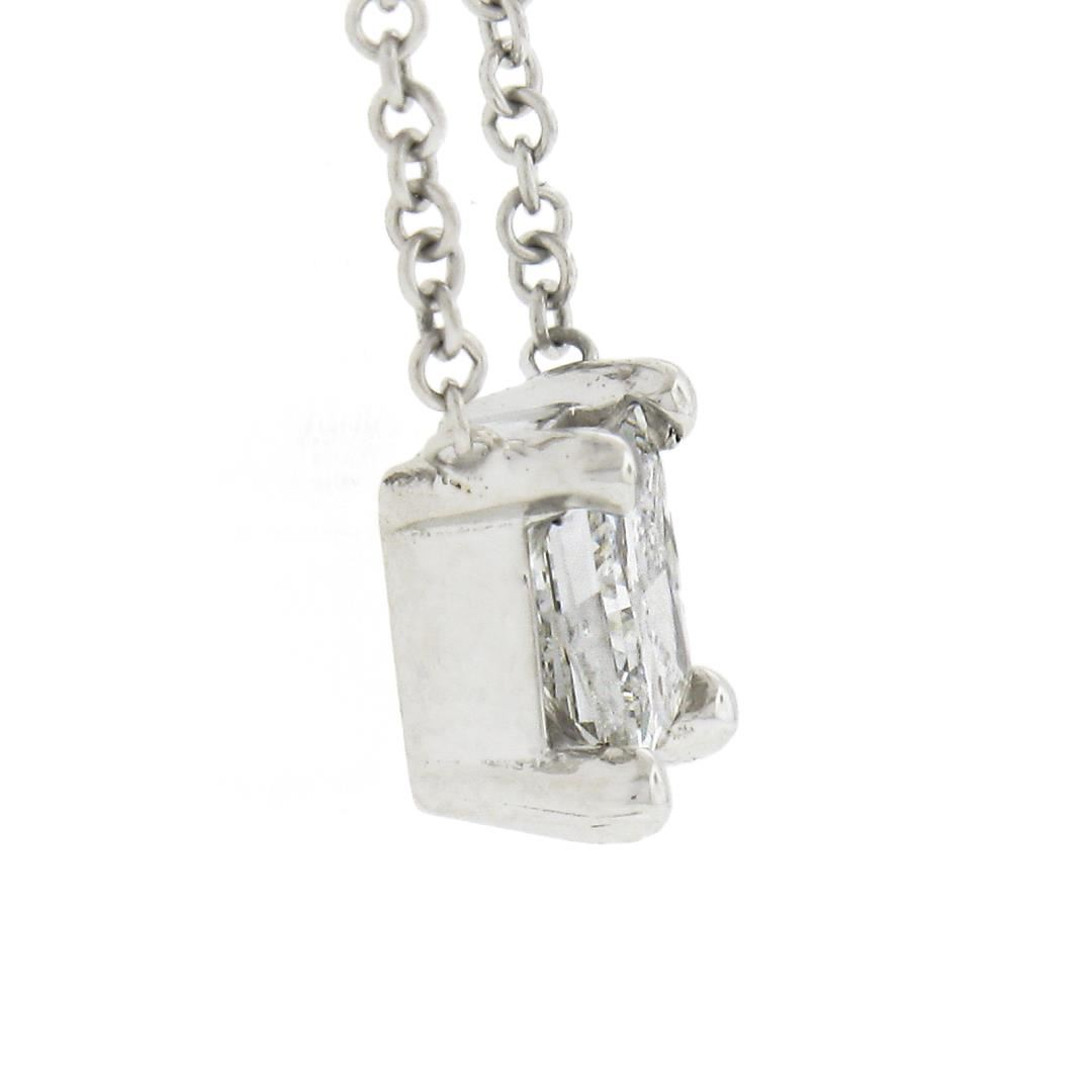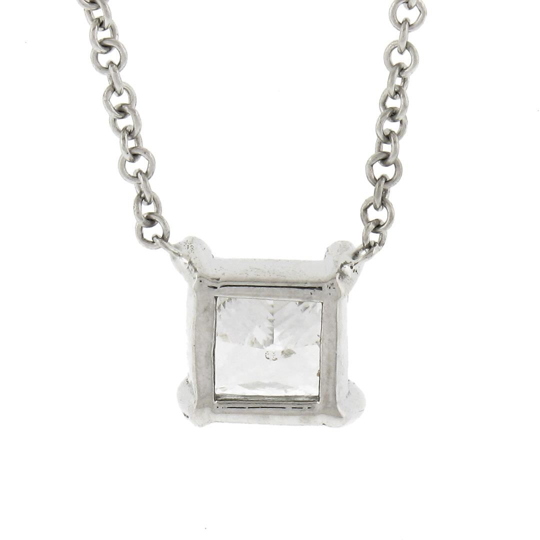 A new solid 14k white gold pendant necklace, with 1 princess cut natural diamond (G - I1 ; 0.48ct). Adjustabel 16 & 18 inch cable link chain, 2.06 grams total weight, pendant measures 5.8x6mm.