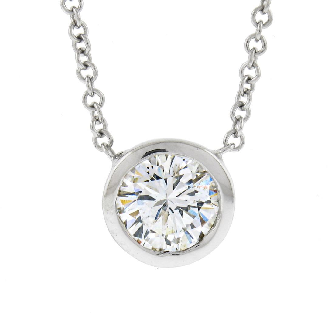 A new solid 14k white gold solitaire pendant necklace, with 1 round brilliant cut natural diamond (H - SI1 ; 0.55ct). Adjustabel 16 or 18 inch cable link chain, 2.18 grams total weight, pendant diameter measures 6.6mm.