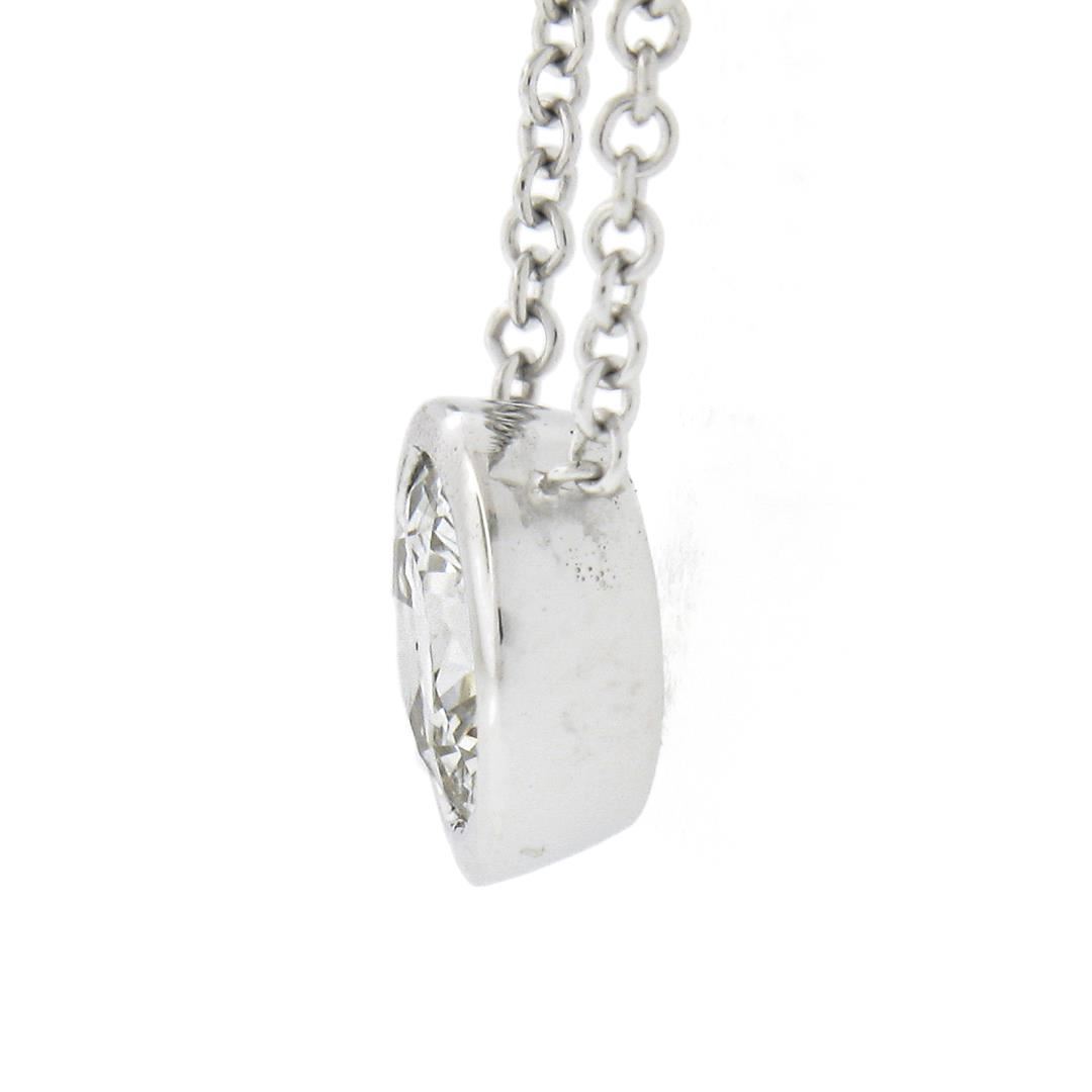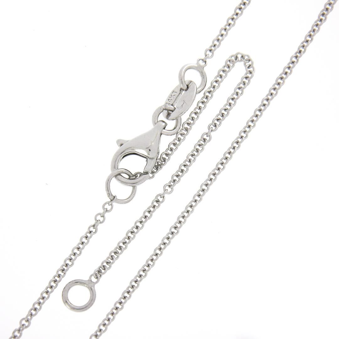 A new solid 14k white gold solitaire pendant necklace, with 1 round brilliant cut natural diamond (H - SI1 ; 0.55ct). Adjustabel 16 or 18 inch cable link chain, 2.18 grams total weight, pendant diameter measures 6.6mm.