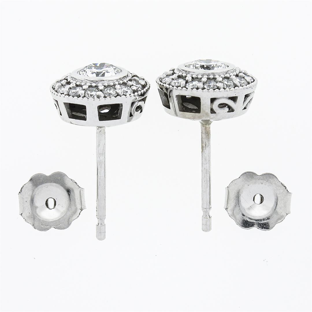 A new solid 14k white gold stud earrings, with 30 round brilliant cut natural diamonds (G/H - VS1/VS2 ; 0.83ctw). The earrings measure approximately 9mm in diameter and weigh a total of 2.73 grams.