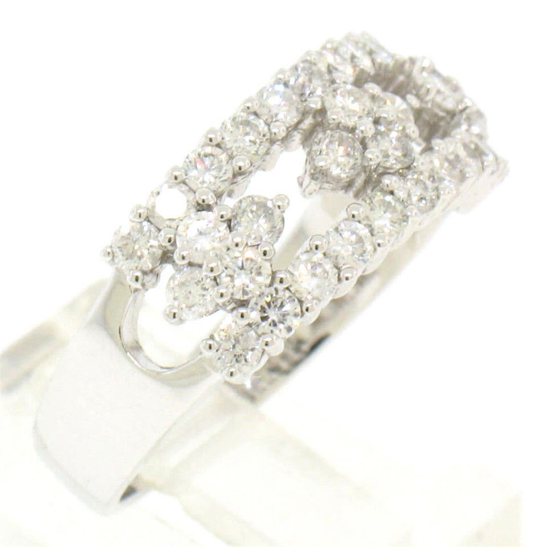 NEW 14k White Gold 1.03ctw Round BRILLIANT Diamond Open Cluster Wide Band Ring. Please see photos and description for all available information. A new solid 14k white gold open cluster wide band ring, featuring 34 round brilliant cut natural diamonds (F/G- VS2/SI1; 1.03ctw).The ring is size 7.0, weighs a total of 5.1 grams, and measures 8.10mm wide.