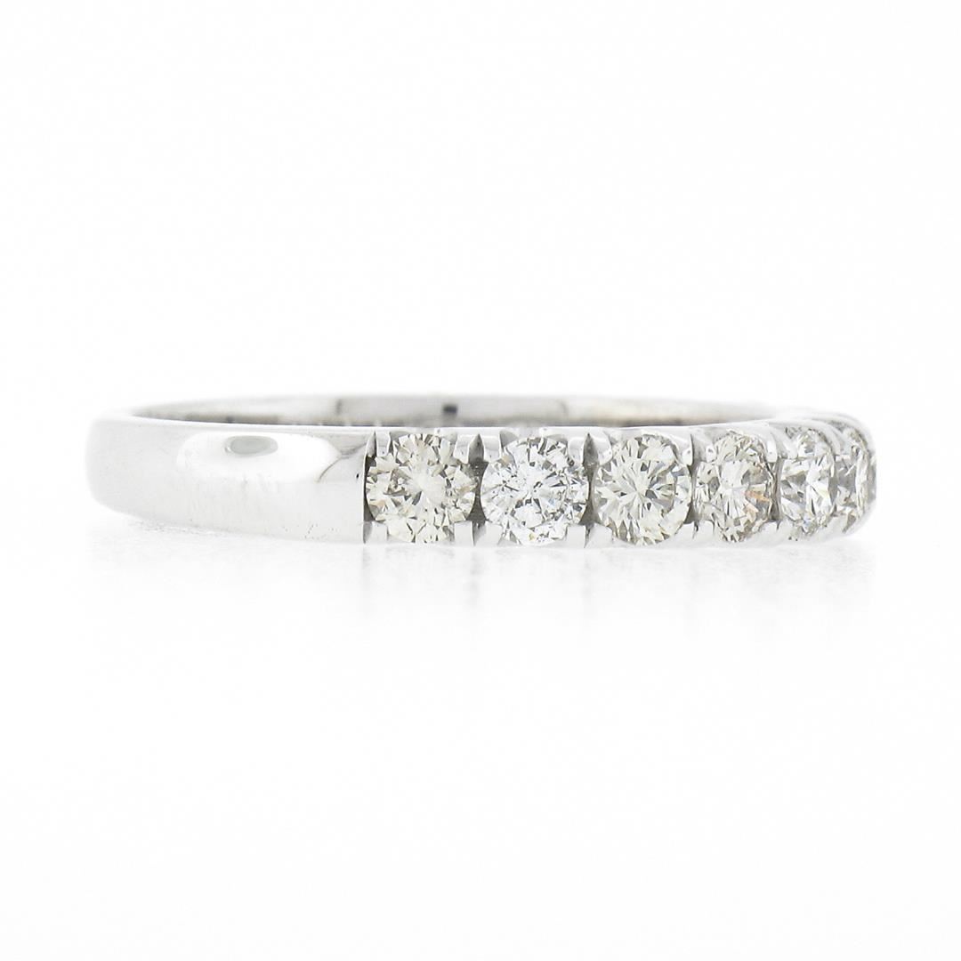 A new solid 14k white gold band ring, with 13 round brilliant cut natural diamonds (H/I - VS2/SI1 ; 1.03ctw). The ring is size 6.5, weighs a total of 3.0 grams, and measures 3.2mm wide.