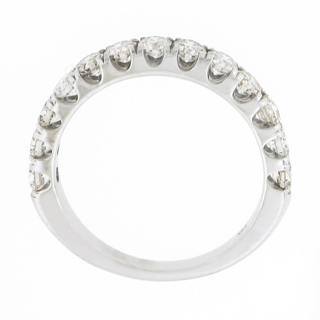 A new solid 14k white gold band ring, with 13 round brilliant cut natural diamonds (H/I - VS2/SI1 ; 1.03ctw). The ring is size 6.5, weighs a total of 3.0 grams, and measures 3.2mm wide.