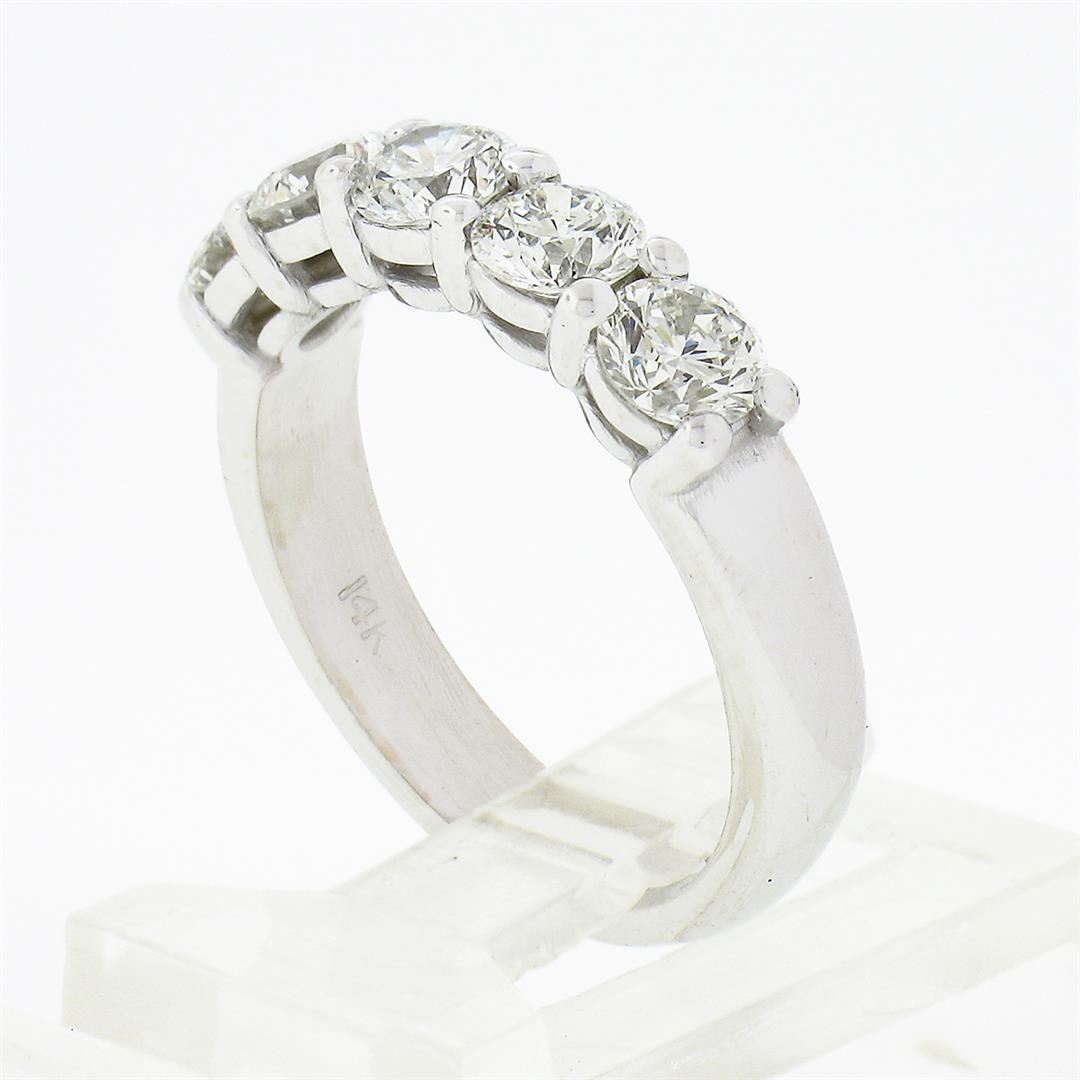 A new solid 14k white gold band ring, with 5 round brilliant cut natural diamonds (F/G - VS1/VS2 ; 1.38ctw). The ring is size 5.5, weighs a total of 4.39 grams, and measures 4.3mm wide.