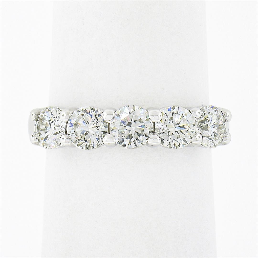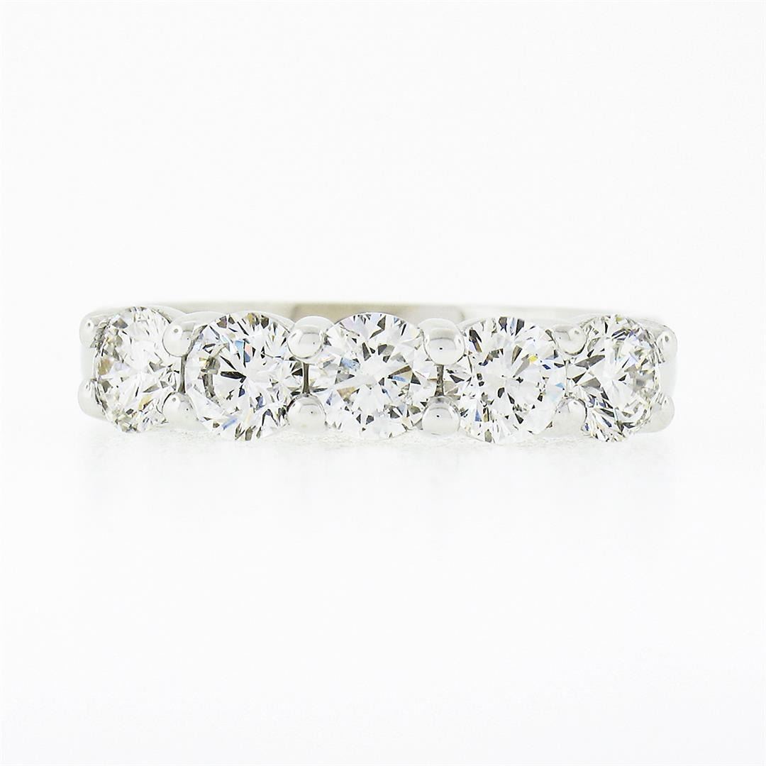 A new solid 14k white gold band ring, with 5 round brilliant cut natural diamonds (F/G - VS1/VS2 ; 1.38ctw). The ring is size 5.5, weighs a total of 4.39 grams, and measures 4.3mm wide.
