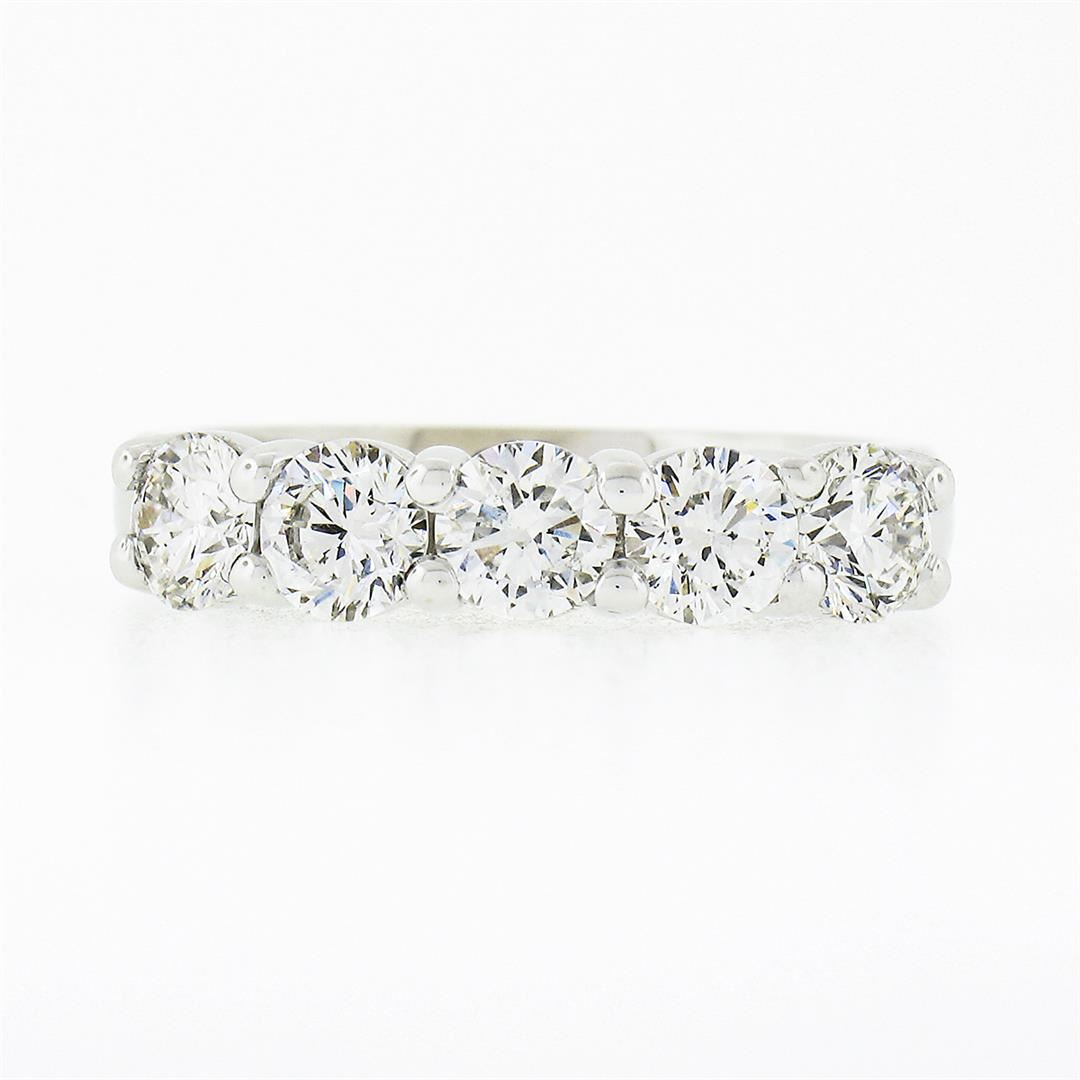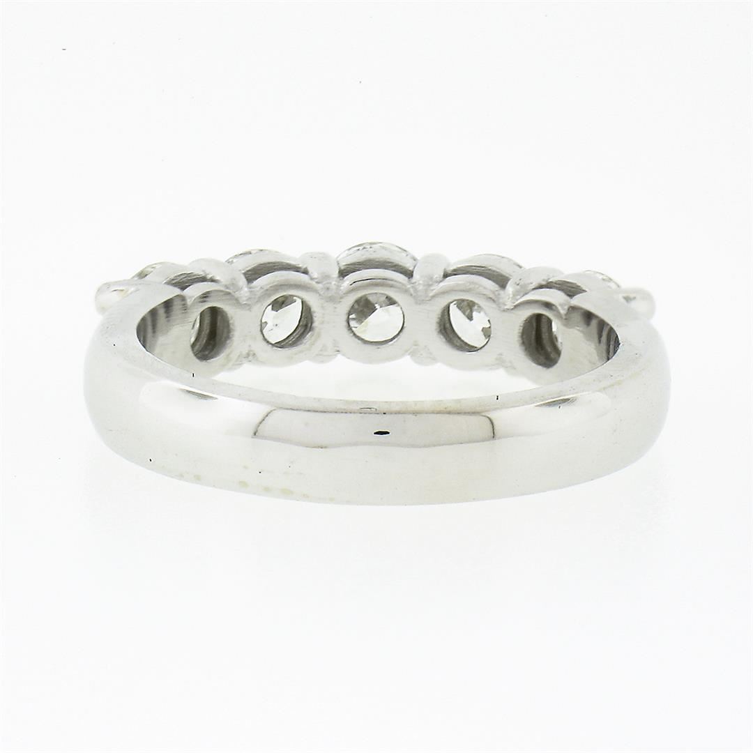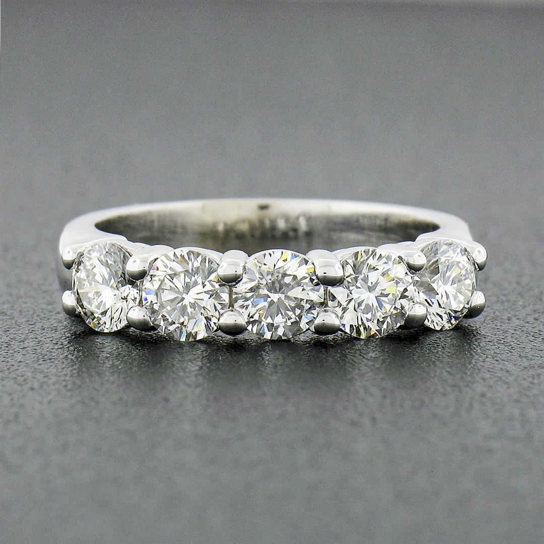 A new solid 14k white gold band ring, with 5 round brilliant cut natural diamonds (F/G - VS1/VS2 ; 1.38ctw). The ring is size 5.5, weighs a total of 4.39 grams, and measures 4.3mm wide.