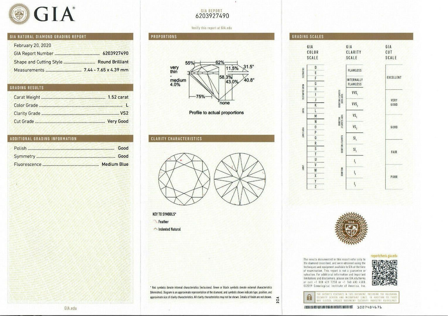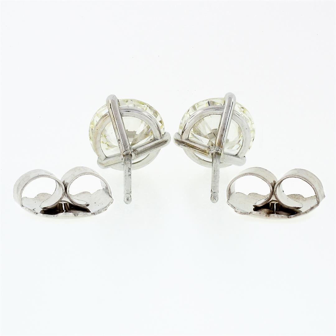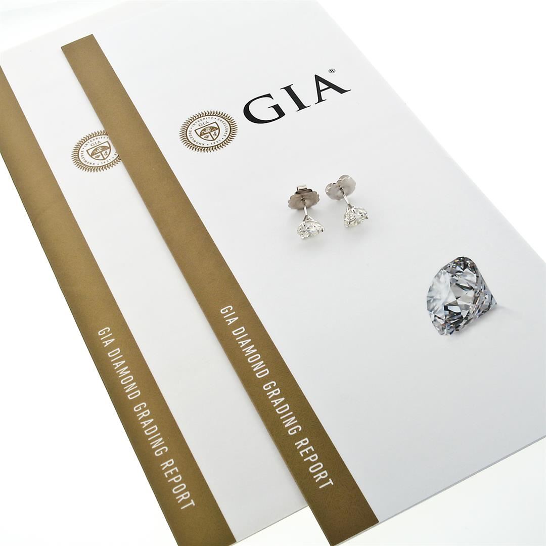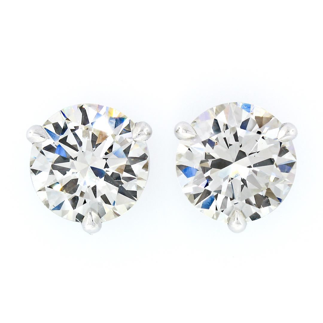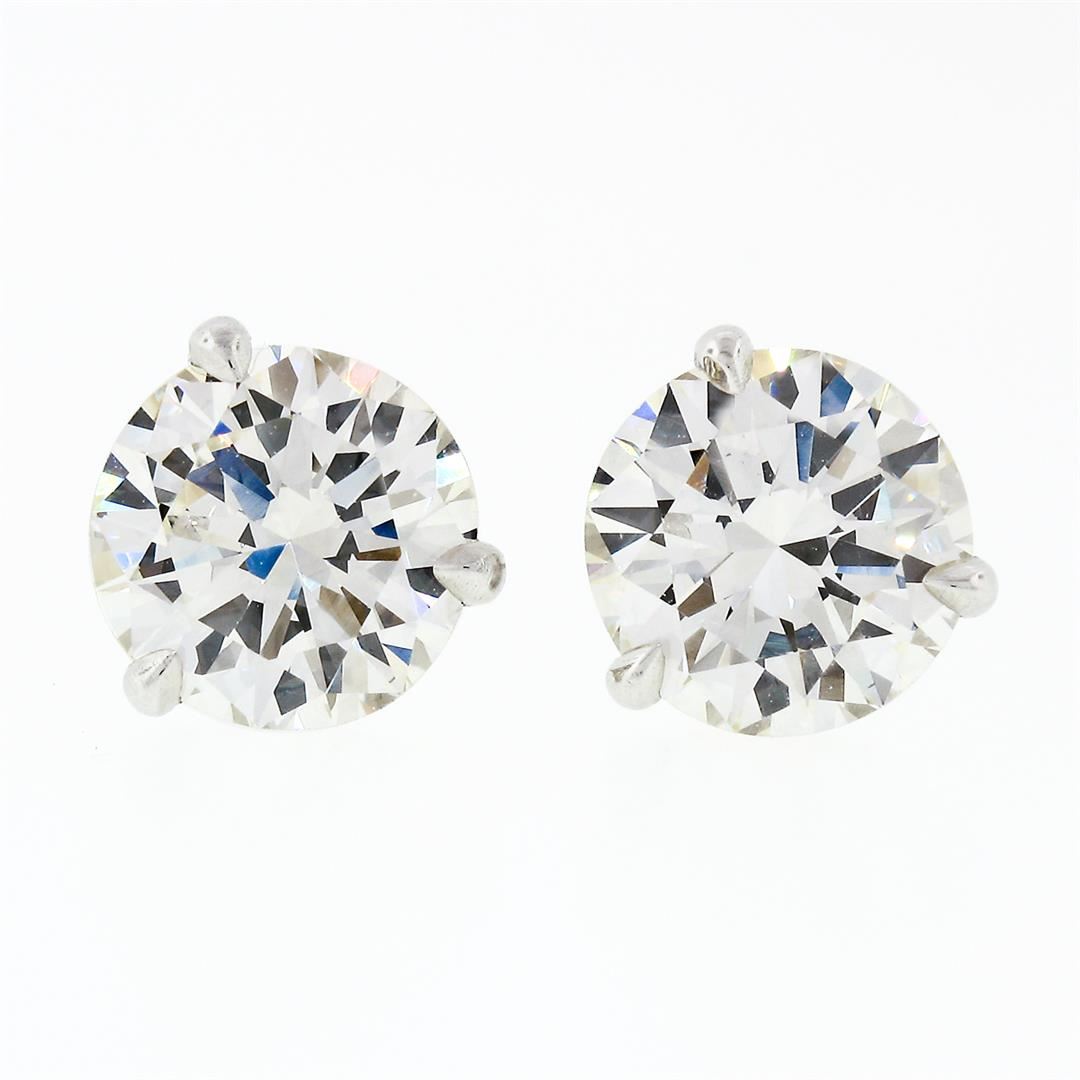 A new solid 14k white gold stud earrings, with 2 GIA certified round brilliant cut natural diamonds( K/L- VS2/SI1; 3.03ctw). The earrings measure approximately 8.13mm in diameter and weigh a total of 2.19 grams. Comes with all original relevant certifications.