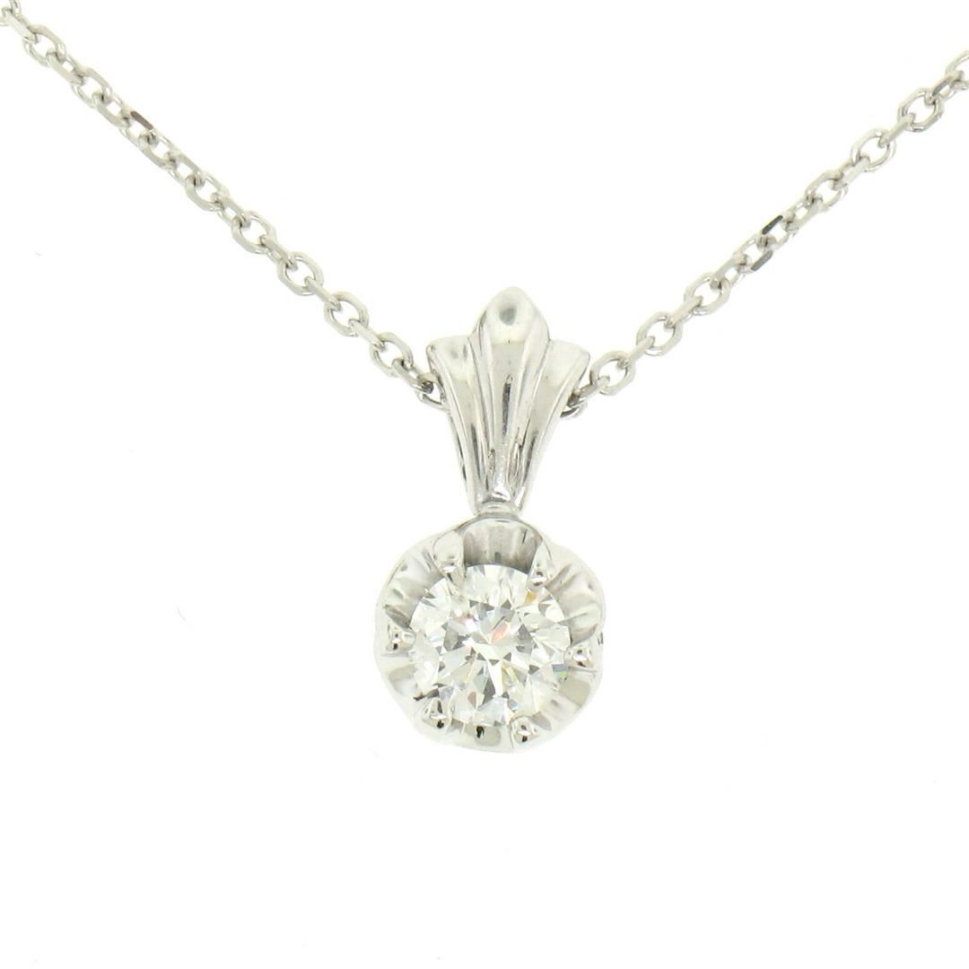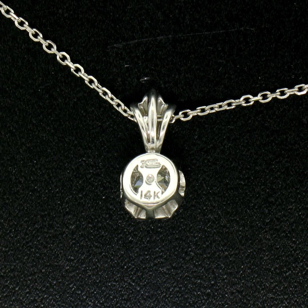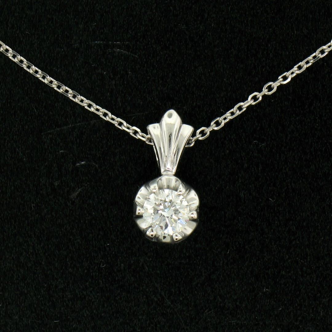 One NEW 14k White Gold .45ct F VS2 Round Brilliant Diamond Solitaire Pendant & Chain. Item Details: Material: 14K Solid White Gold, Weight: 2.60 Grams, Stone(s): (1) Natural Genuine Diamond - Round Brilliant Cut - Illusion Prong Set - VS2 Clarity - F Color, Total Carat Weight: 0.45 (approx.), Chain Type: Cable Link, Chain Length: 16 Inches, Clasp: Lobster Claw, Width: 6.7mm Height: 13.5mm (including the bail) Thickness: 5.85mm Condition: New w/o Tag