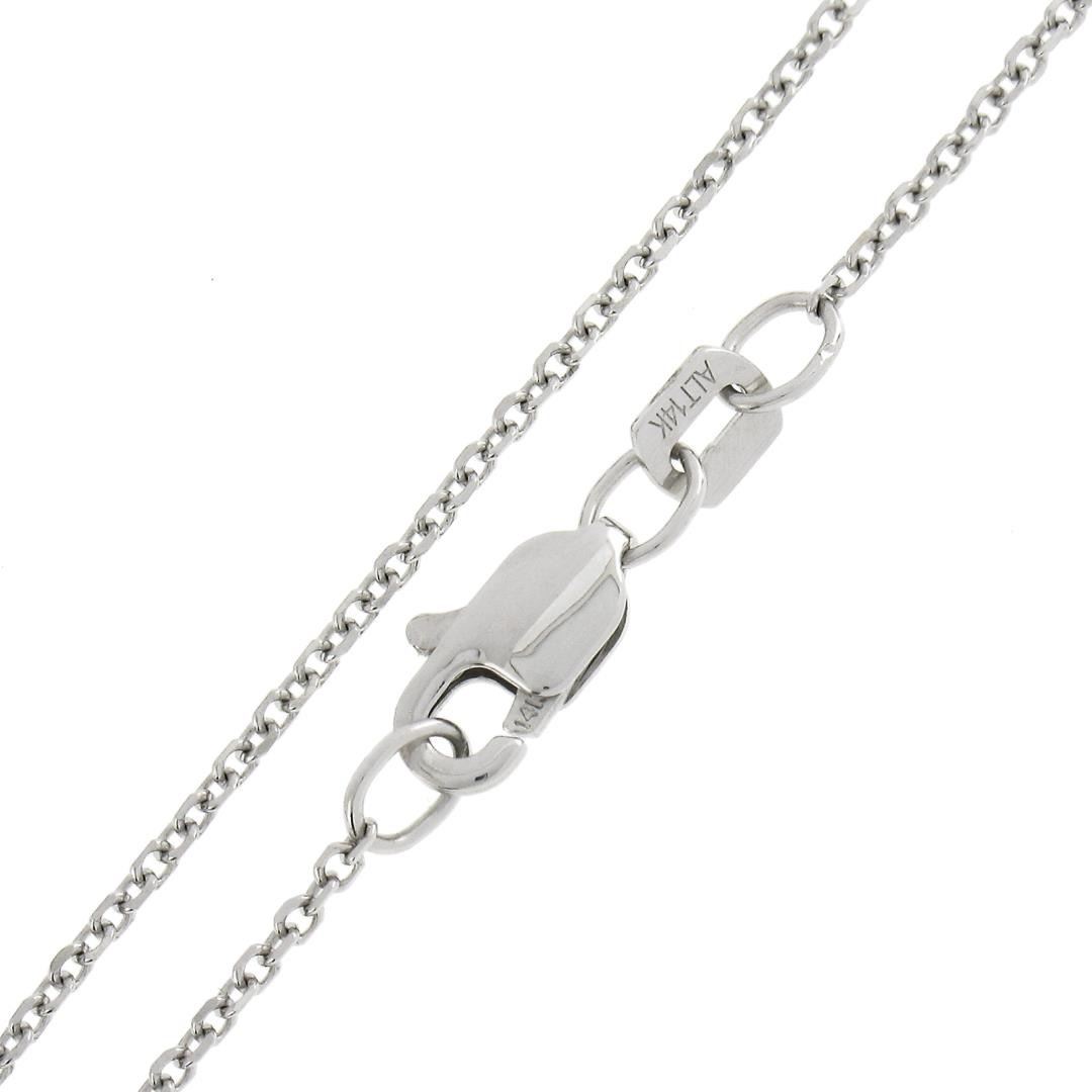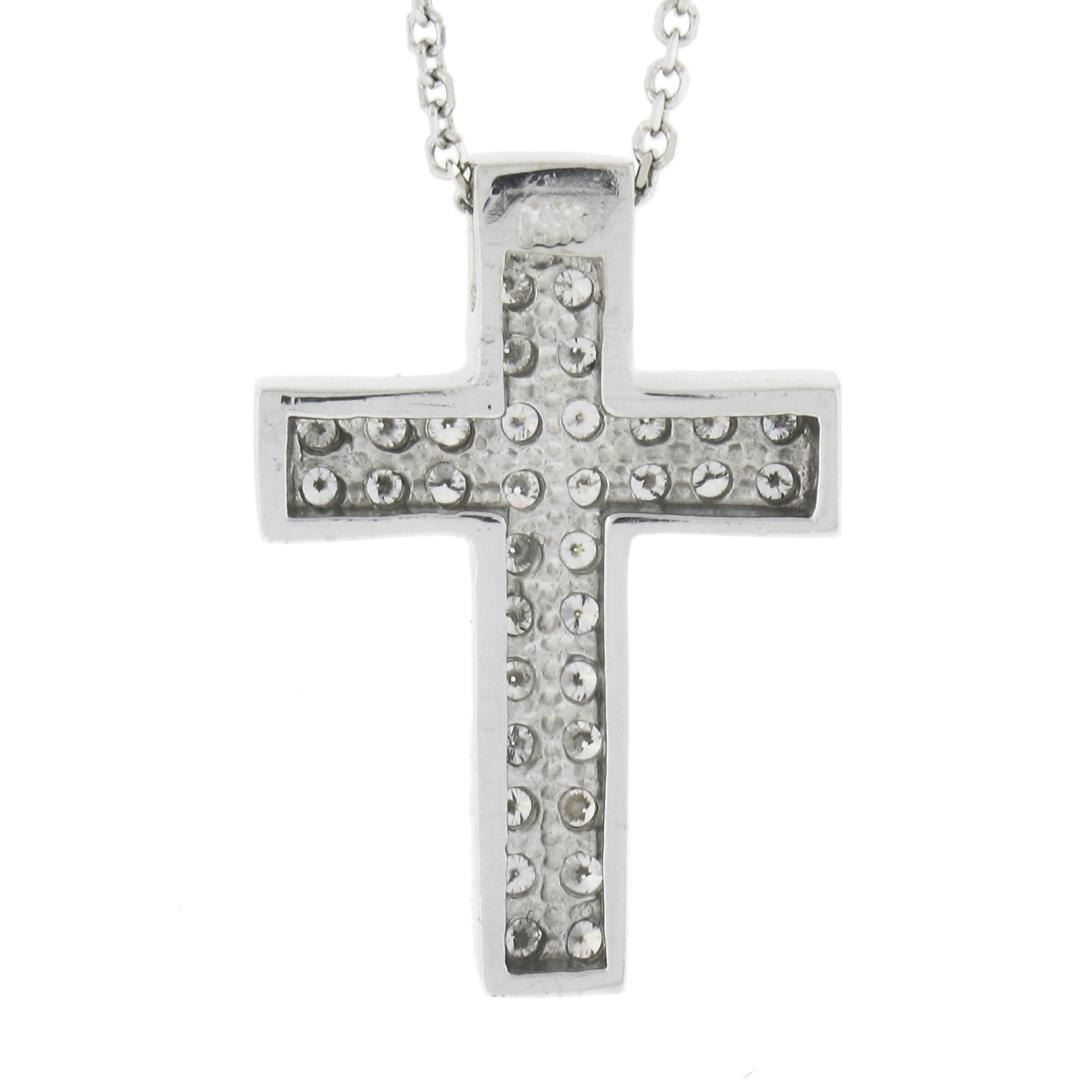 A new solid 14k white gold pendant necklace, with 36 round brilliant cut natural diamonds (G/H - VS2/SI1 ; 0.60ctw). 18 inch cable link chain, 4.80 grams total weight, pendant measures 22.30x15.60mm.