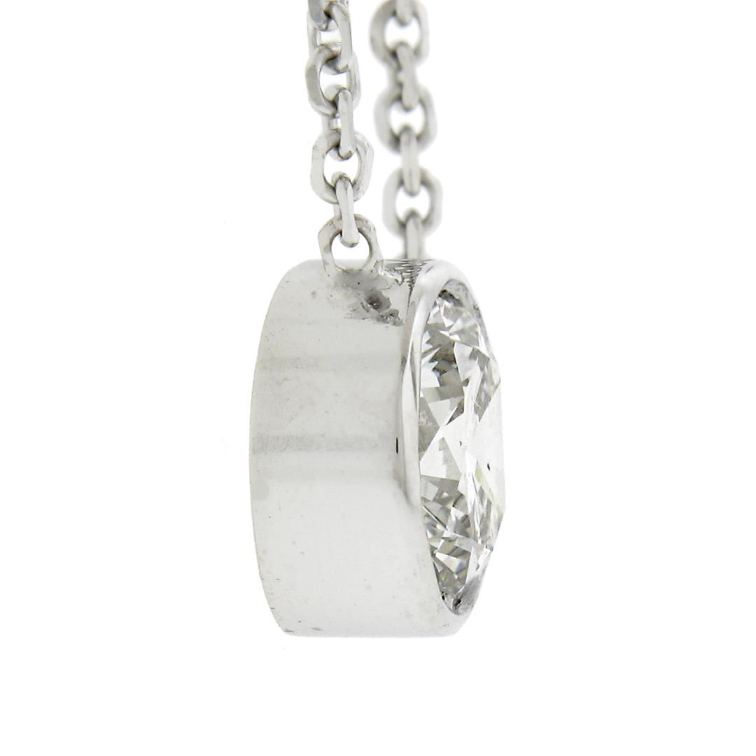 A new solid 14k white gold solitaire pendant necklace, with 1 GIA graded round cut natural diamond (F - SI1 ; 0.84ct). Adjustable to 16 or 18 inch cable link chain, 2.70 grams total weight, pendant measures 7.3mm. Comes with all original relevant certifications.