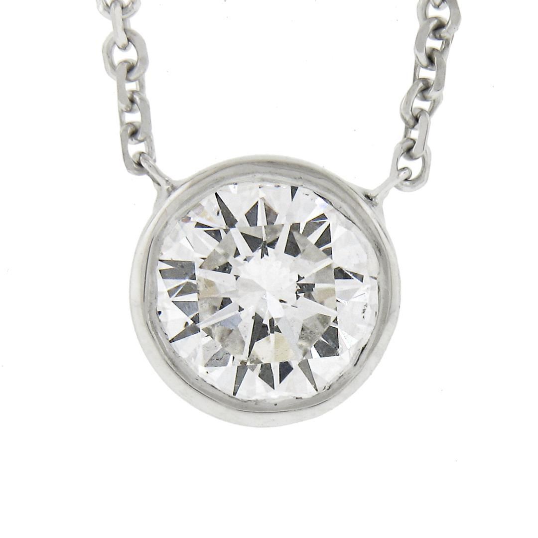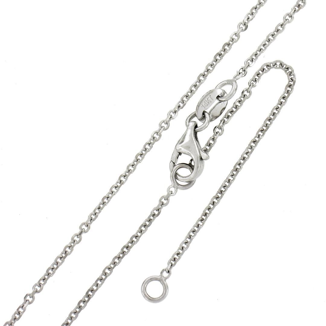 A new solid 14k white gold solitaire pendant necklace, with 1 GIA graded round cut natural diamond (F - SI1 ; 0.84ct). Adjustable to 16 or 18 inch cable link chain, 2.70 grams total weight, pendant measures 7.3mm. Comes with all original relevant certifications.