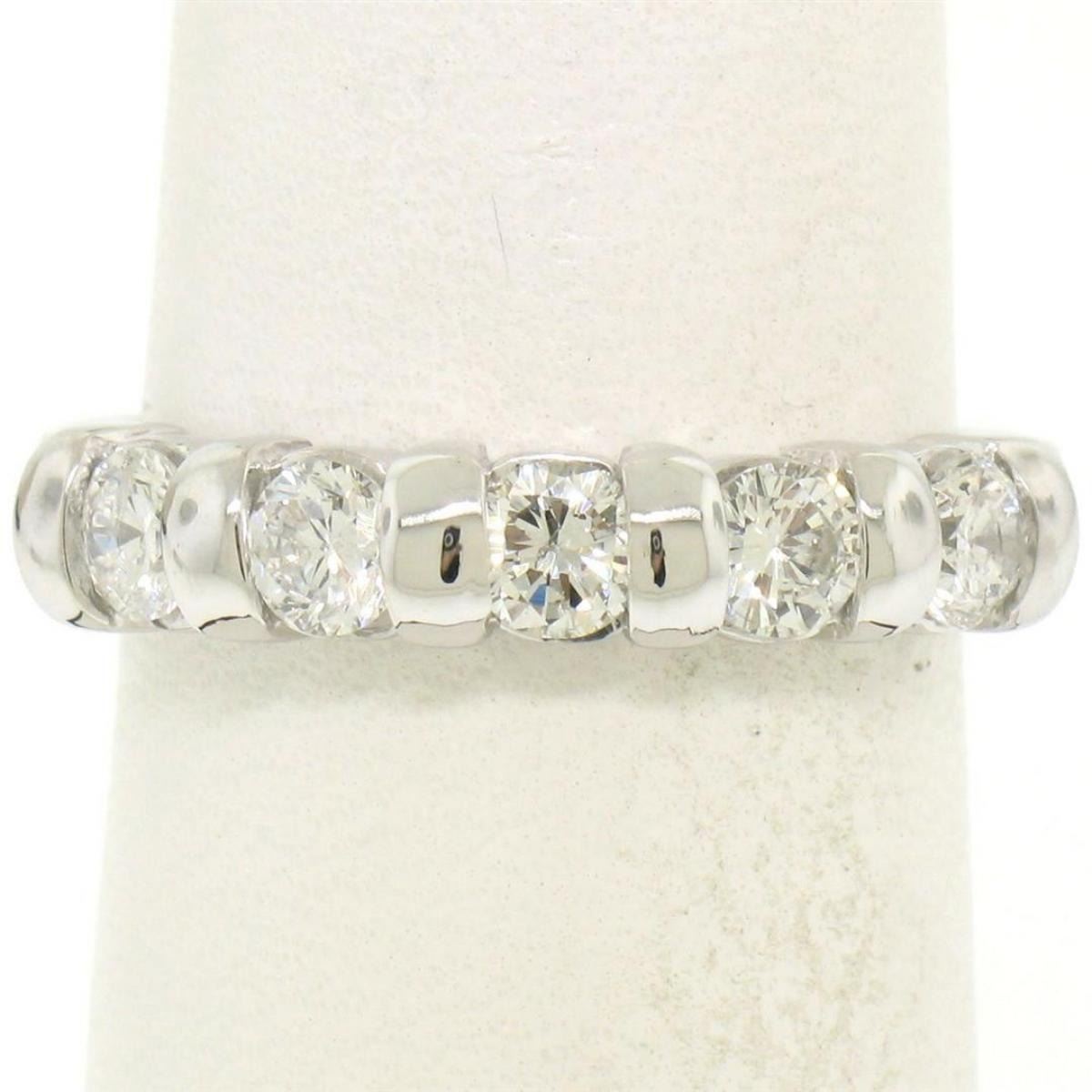 One NEW 14k White Gold FINE 0.80 ctw 5 Bar Set Round Brilliant Diamond Wedding Band Ring. Item Details: Material: Solid 14k White Gold, Weight: 4.51 Grams, Stone(s): (5) Natural Genuine Diamonds - Round Brilliant Cut - Bar Set - VS2/SI1 Clarity - G/H Color, Total Carat Weight: 0.80 (approx.), Ring Size: 6.5, Ring Width: 4.10mm, Ring Height: 3.60mm rise off the finger, Condition: New w/o Tag!