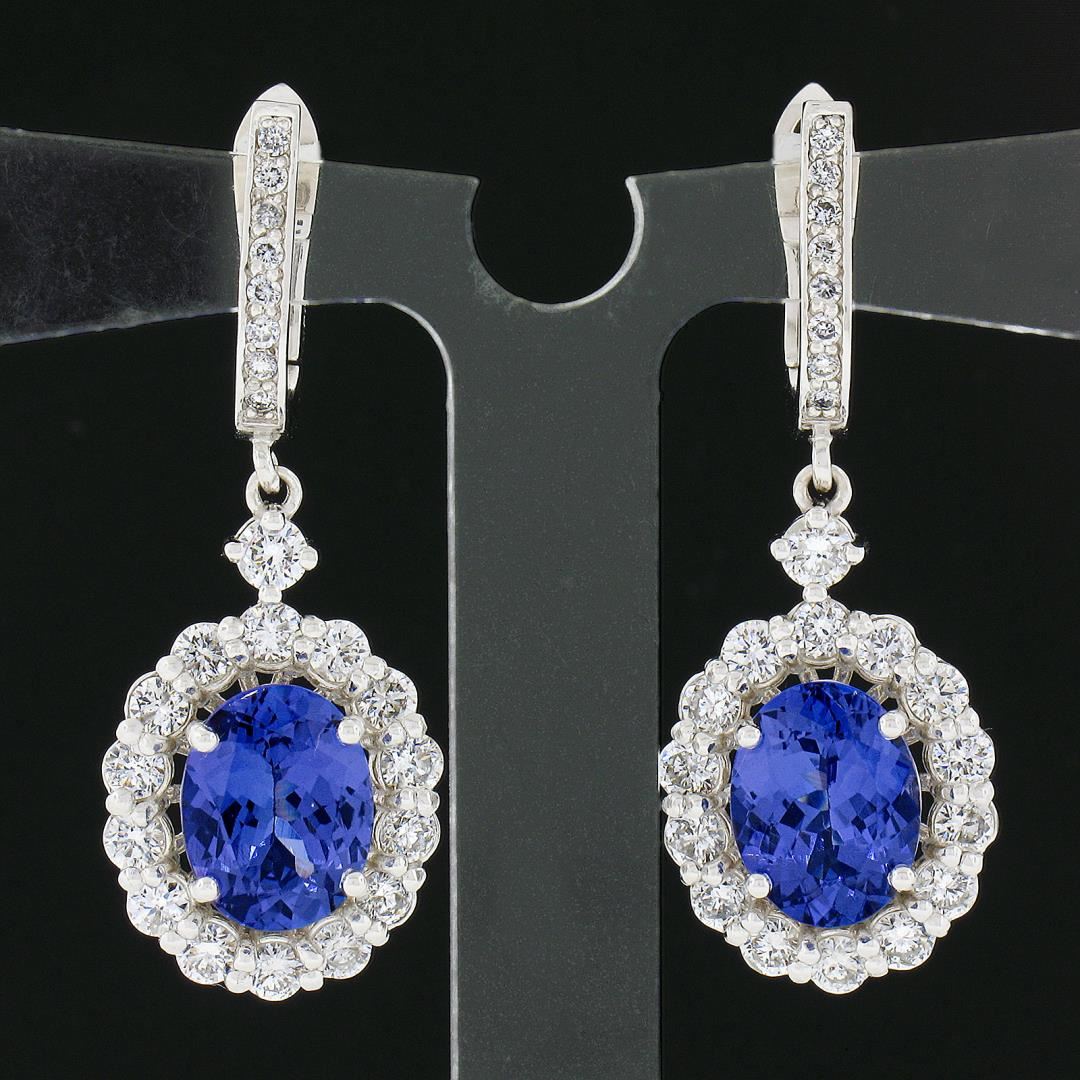 NEW 14k White Gold Oval Tanzanite & Round Brilliant Diamond Drop Dangle Earrings