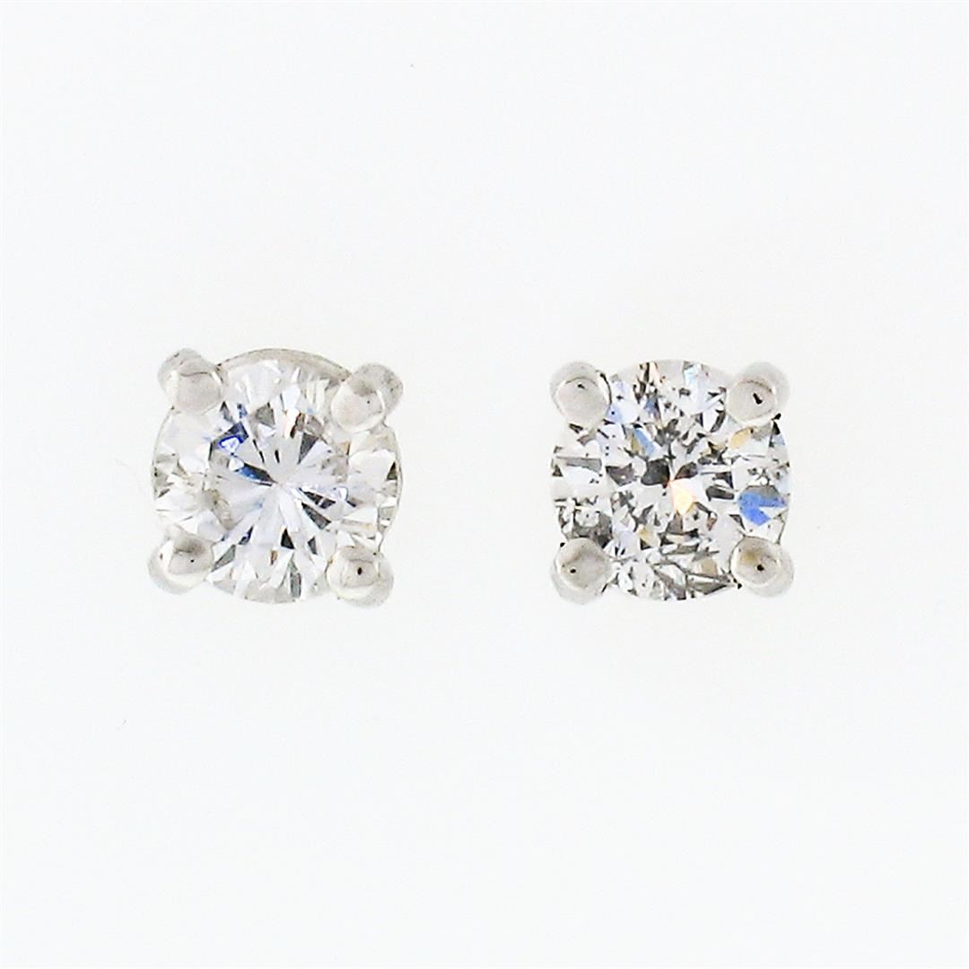 A new soldi 14k white gold stud earrings, with 2 round brilliant cut natural diamonds (G/H - VS2/SI1; 0.25ctw). The earrings measure approximately 4.1mm in diameter and weigh a total of 0.62 grams.