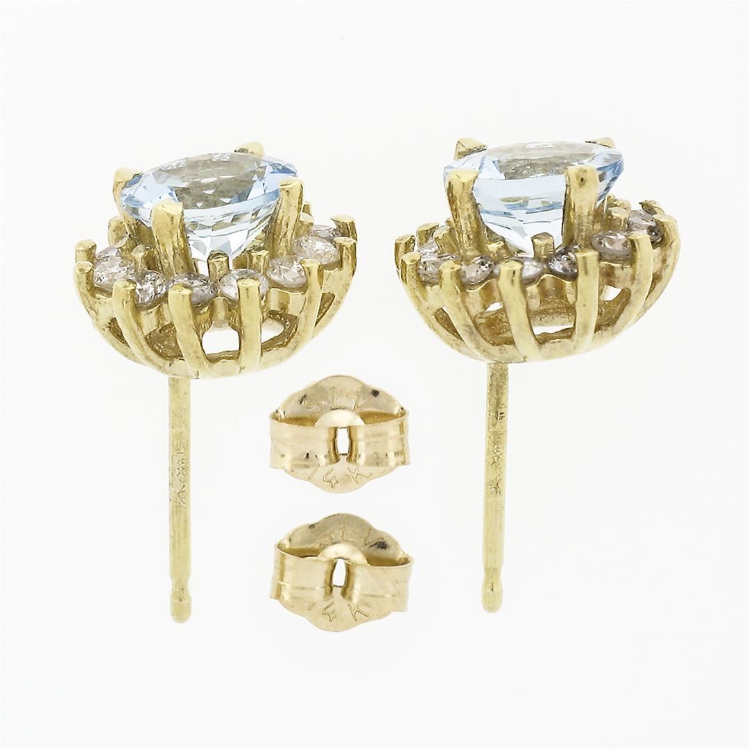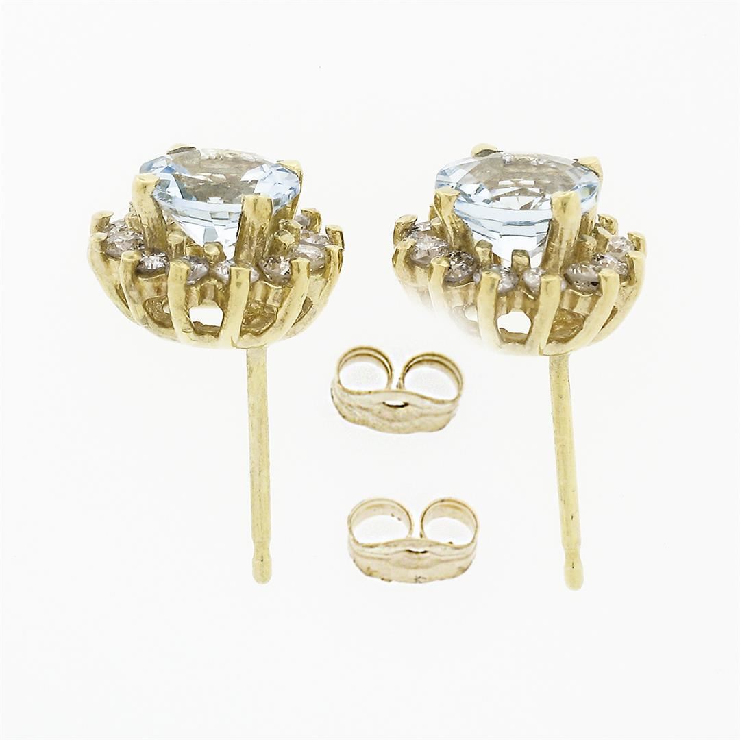 NEW 14k Yellow Gold 2.12 ctw Round Aquamarine Diamond Halo Cluster Stud Earrings
