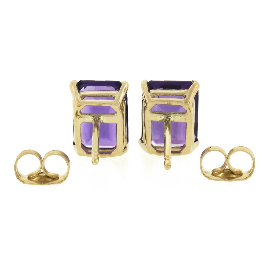 a new solid 14k yellow gold stud earrings, with 2 emerald cut natural amethysts (2.64ctw). The earrings measure approximately 8x6.5mm and weigh a total of 1.44 grams.