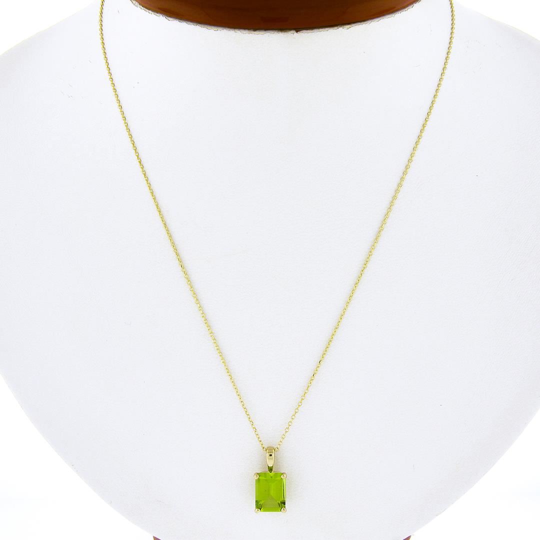 NEW 14k Yellow Gold 2 ctw Emerald Step Cut Peridot Solitaire Pendant & Cable Cha