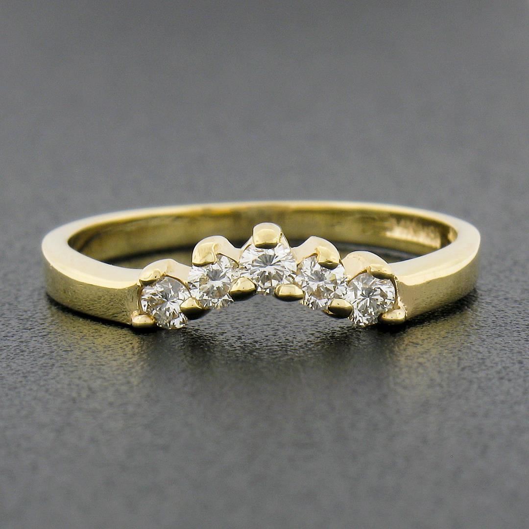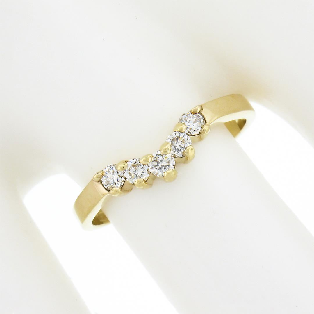 NEW 14k Yellow Gold .26 ctw Round Prong Diamond Curved Stackable Wedding Band Ri