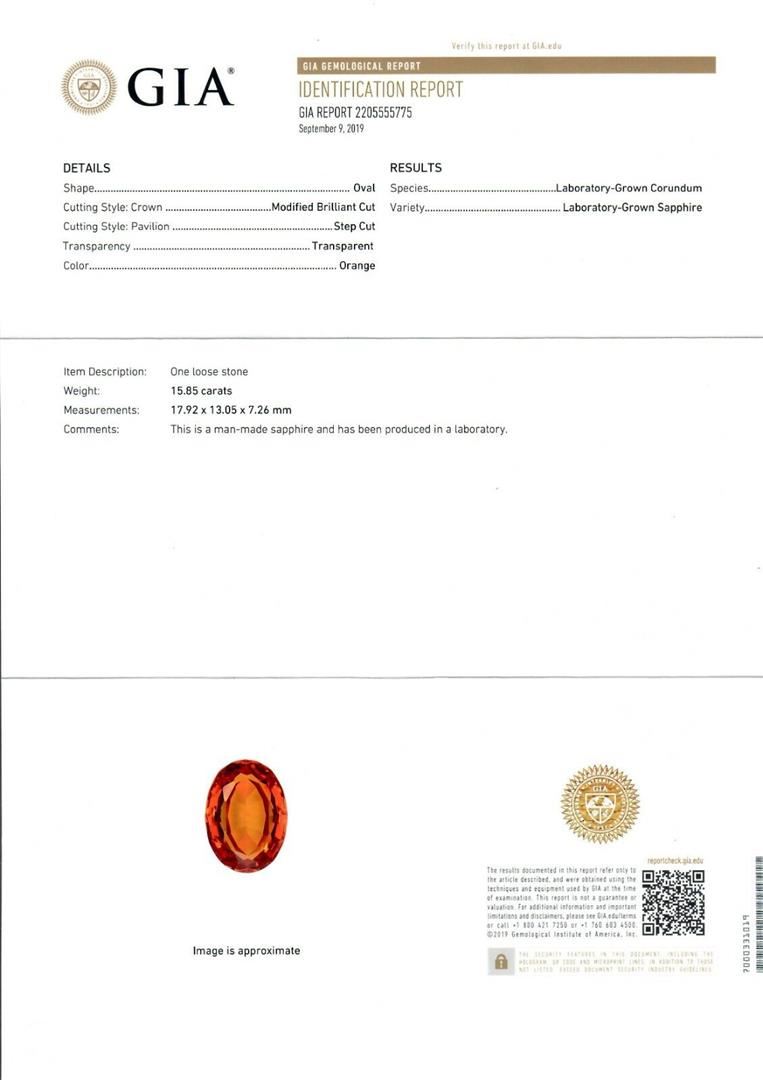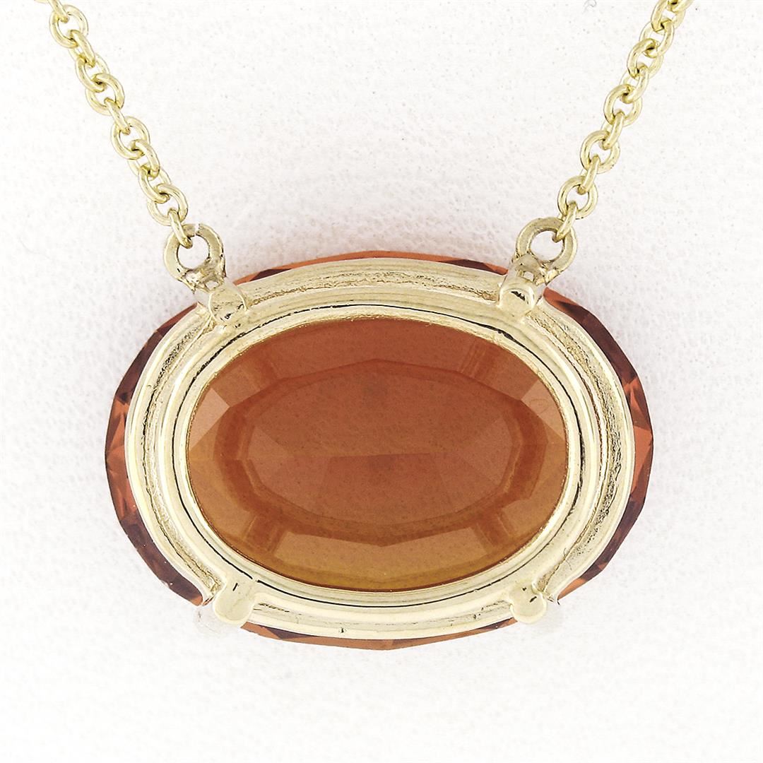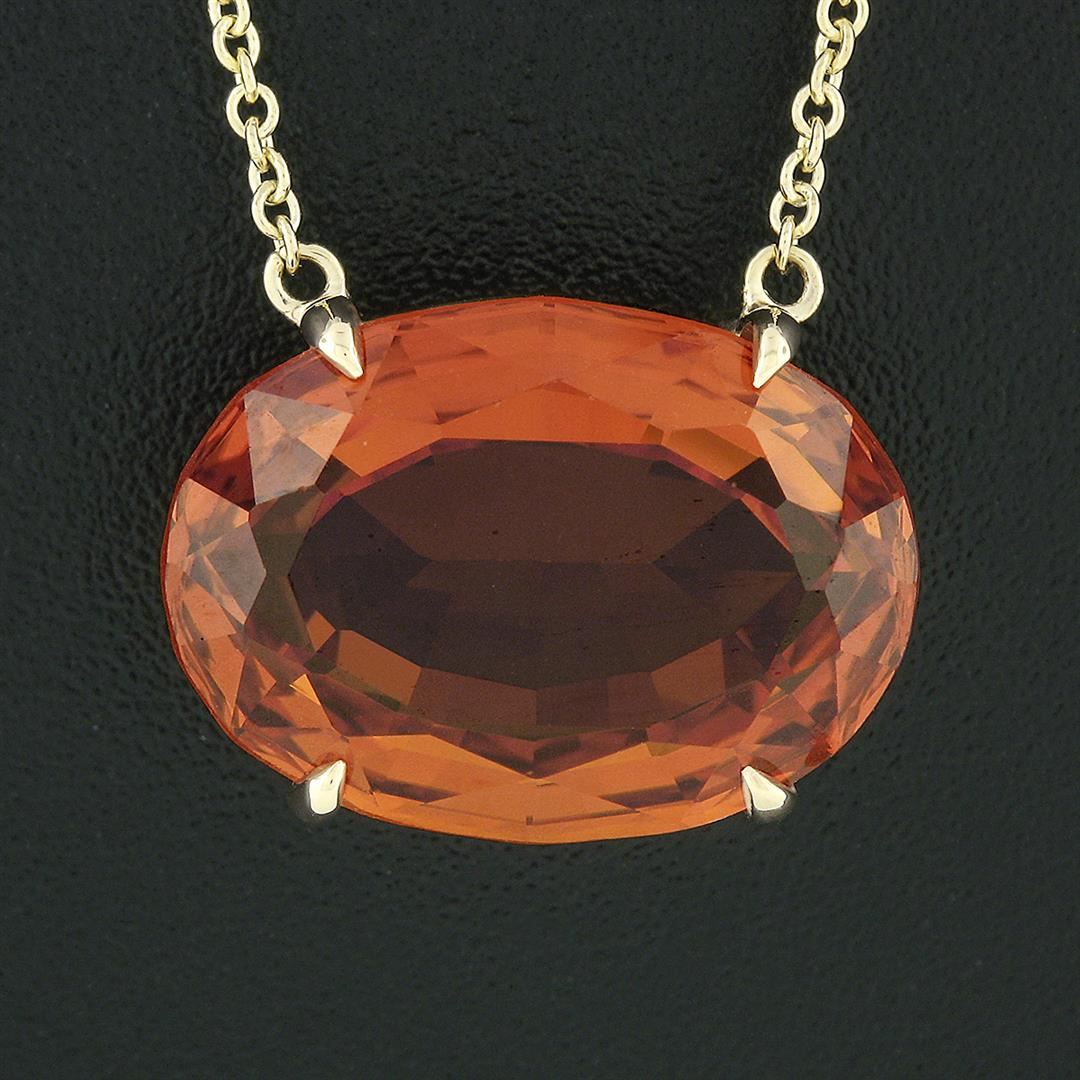 A new solid 14k yellow gold pendant necklace, with 1 GIA certified oval cut natural sapphire (15.85ct). 18 inch cable link chain, 6.90 grams total weight, pendant measures 13x17.9mm.
