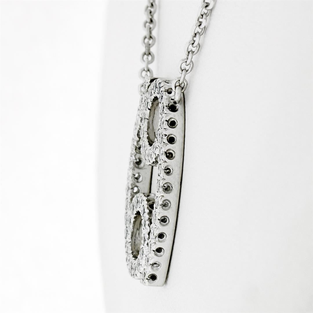 A new solid 14k white gold zodiac cancer pendant necklace, with 48 round brilliant cut natural diamonds (F/G - VS2 ; 0.48ctw). The pendant weighs a total of 6.52 grams, measures 21.52x14.58mm including the bail, and 16 inch faceted cable link chain.