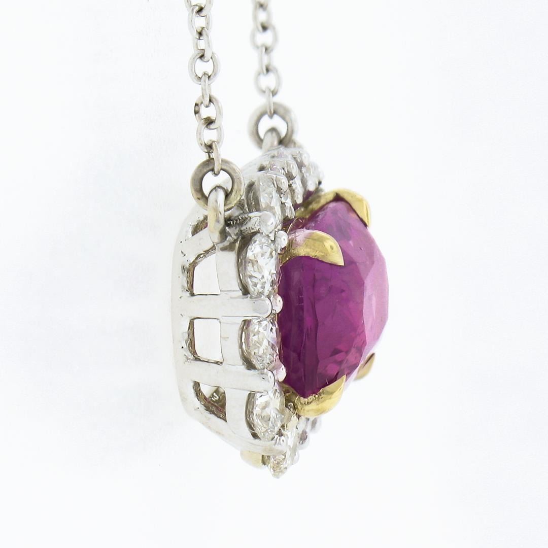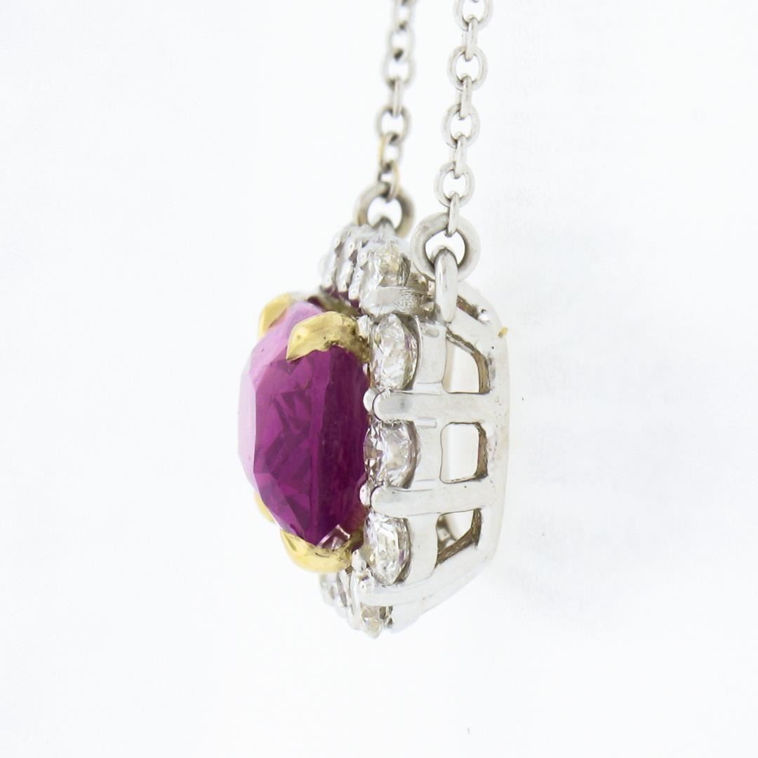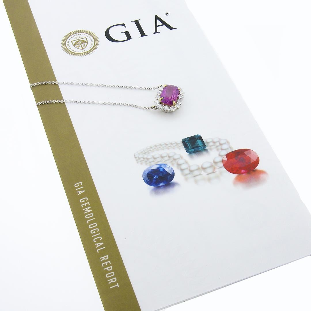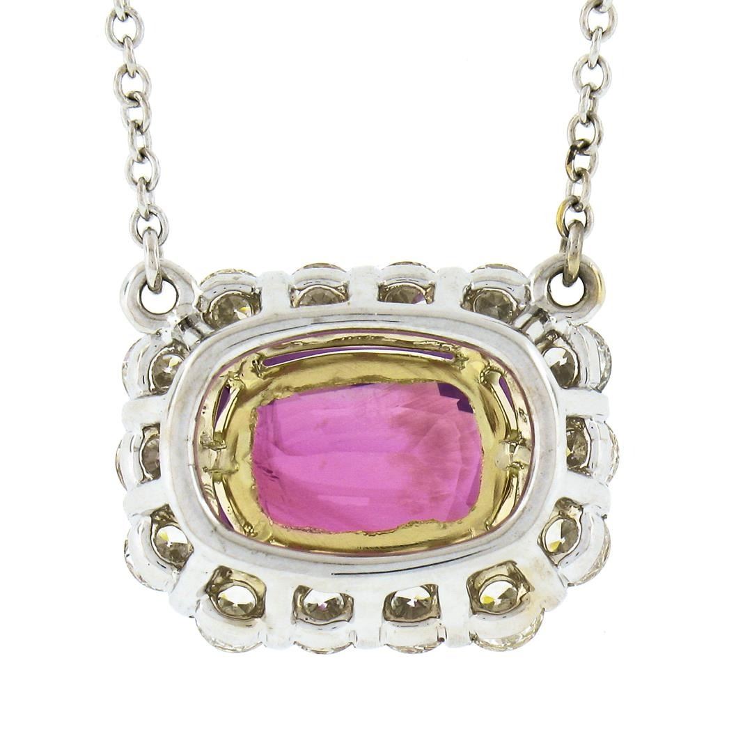 NEW 18K Gold 5.24ctw GIA NO HEAT Pink Sapphire & Diamond Halo Pendant Necklace