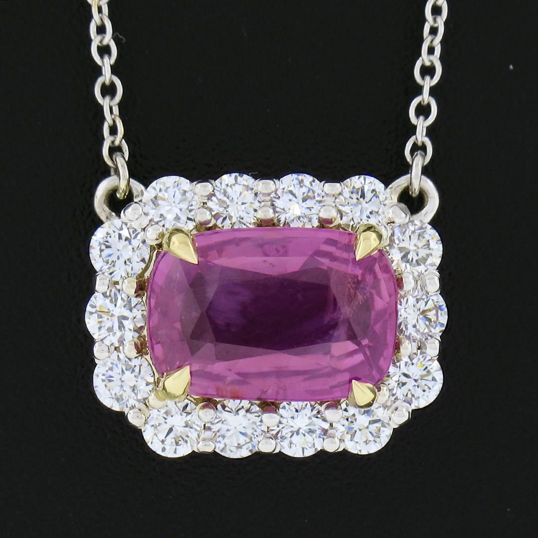 NEW 18K Gold 5.24ctw GIA NO HEAT Pink Sapphire & Diamond Halo Pendant Necklace