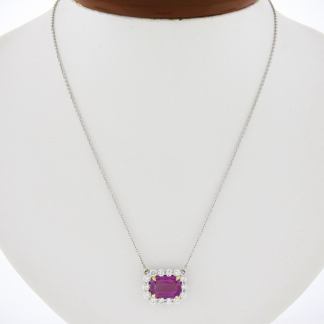 NEW 18K Gold 5.24ctw GIA NO HEAT Pink Sapphire & Diamond Halo Pendant Necklace