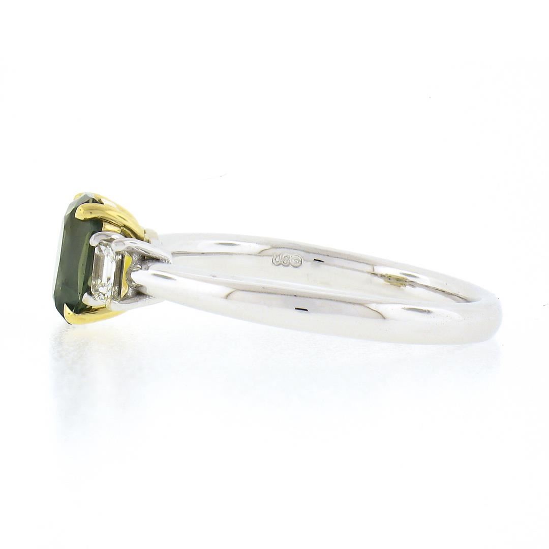 A new solid 18k white gold engagement ring, with 1 GIA graded octagonal cut natural alexandrite (1.24ct), and 2 emerald cut natural diamonds (G/H - VS1/VS2 ; 0.22ct). The ring is size 6.5, weighs a total of 3.45 grams, and measures 6.80mm wide. Comes with all original relevant certifications.