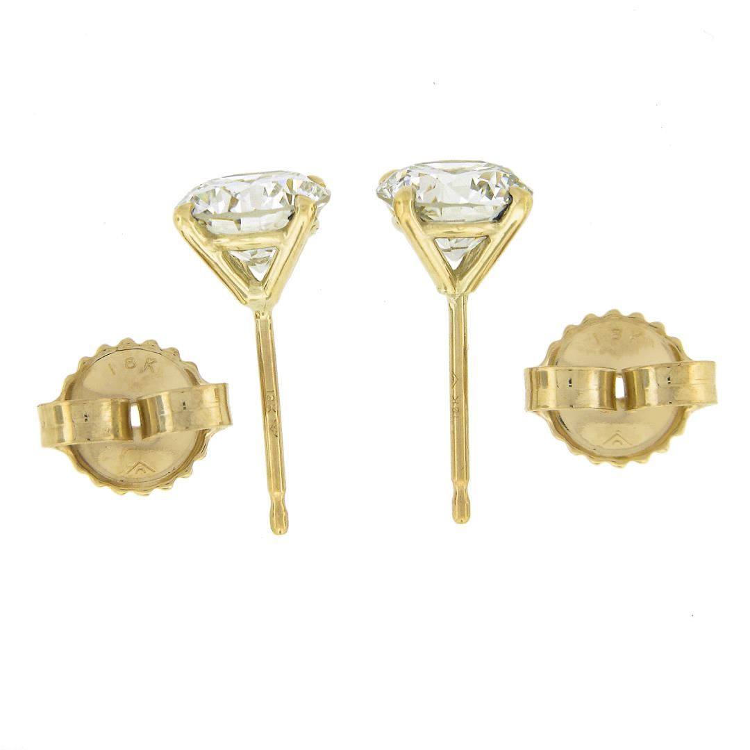 A new solid 18k yellow gold stud earrings, with 2 GIA graded round cut natural diamonds (J - VS2 ; 1.81ctw). The earrings measure approximately 7.4mm in diameter and weigh a total of 1.51 grams. Comes with all original relevant certifications.