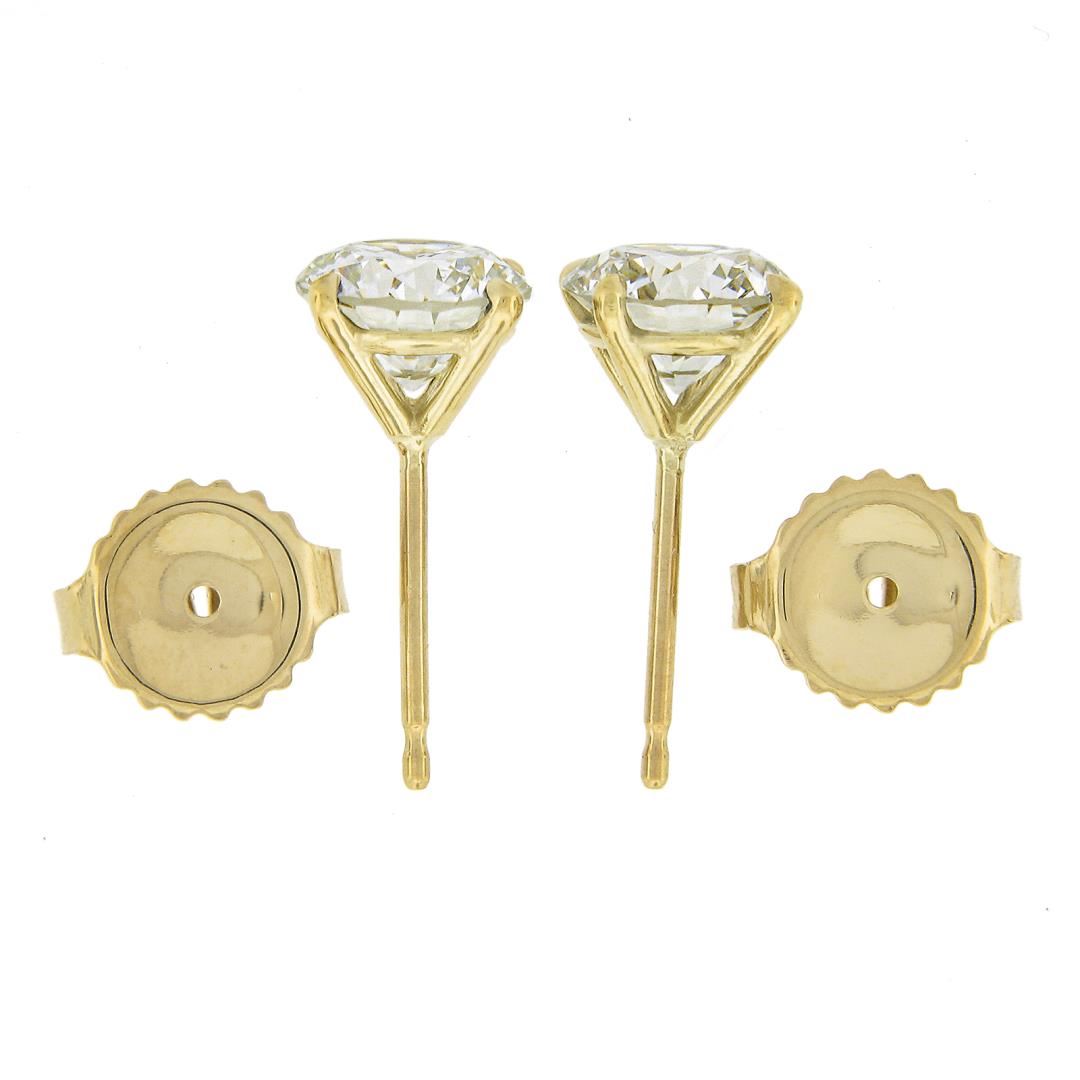 A new solid 18k yellow gold stud earrings, with 2 GIA graded round cut natural diamonds (J - VS2 ; 1.81ctw). The earrings measure approximately 7.4mm in diameter and weigh a total of 1.51 grams. Comes with all original relevant certifications.