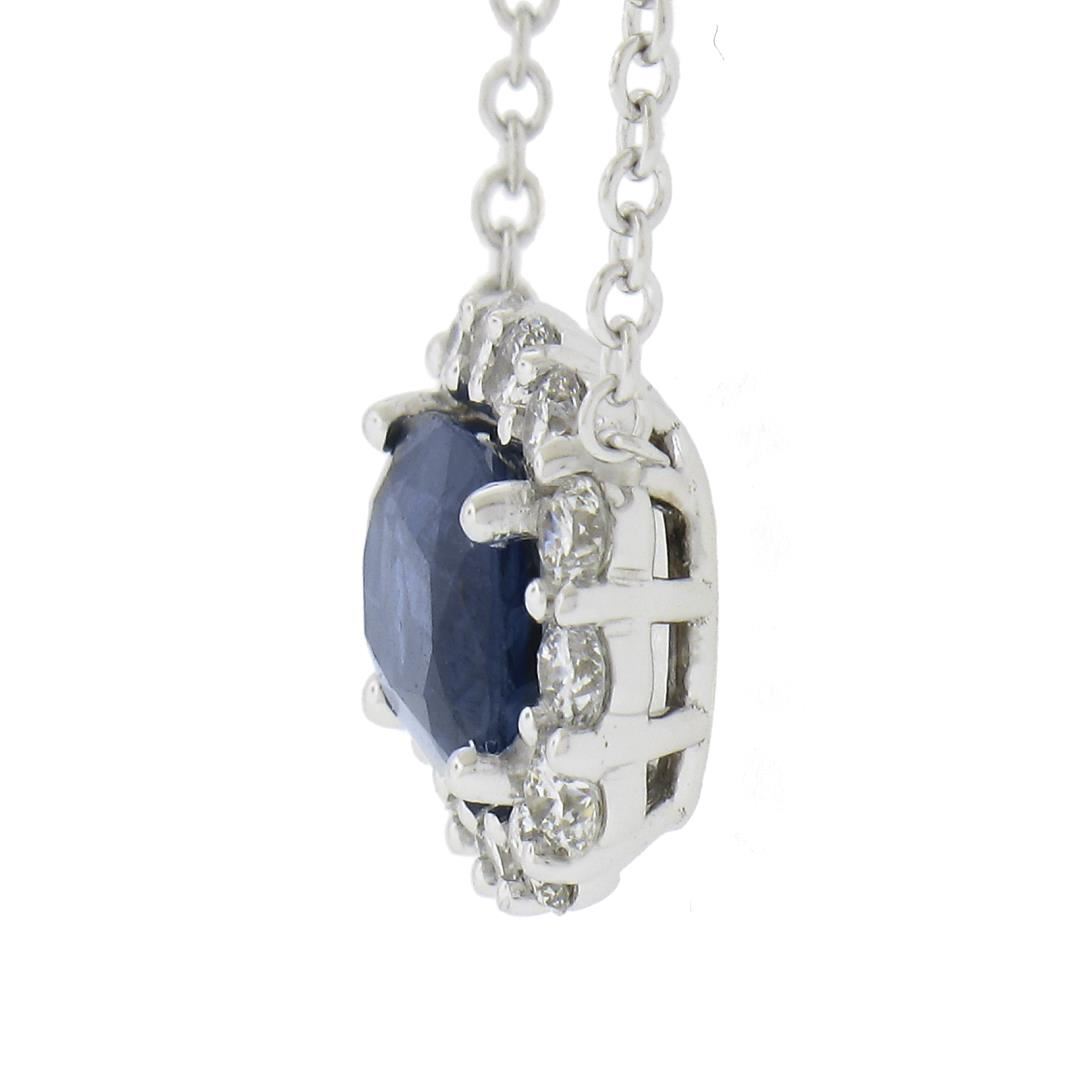 NEW 18k Gold 1.88ctw GIA Cushion Blue Sapphire Diamond Halo Pendant Necklace