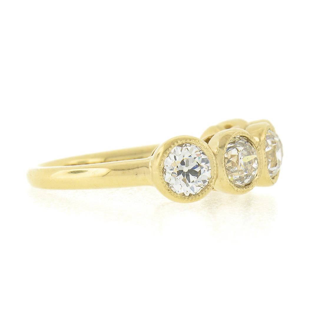 A new solid 18k yellow gold band ring, with 5 old european cut natural diamonds (G/I - VS1/VS2 & (1) SI1 ; 1.94ctw). The ring is size 6.5, weighs a total of 4.87 grams, and measures 5.65mm wide.