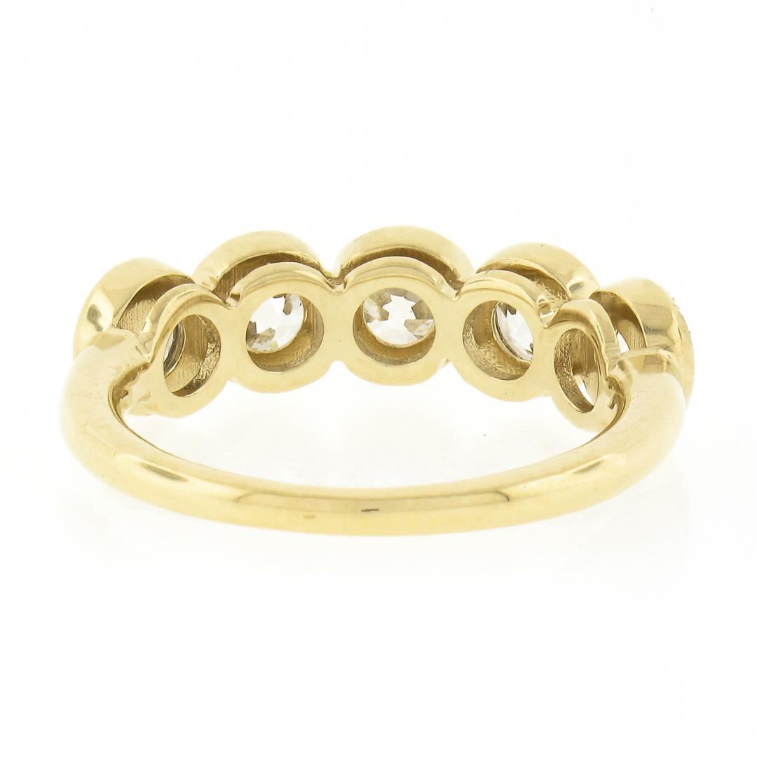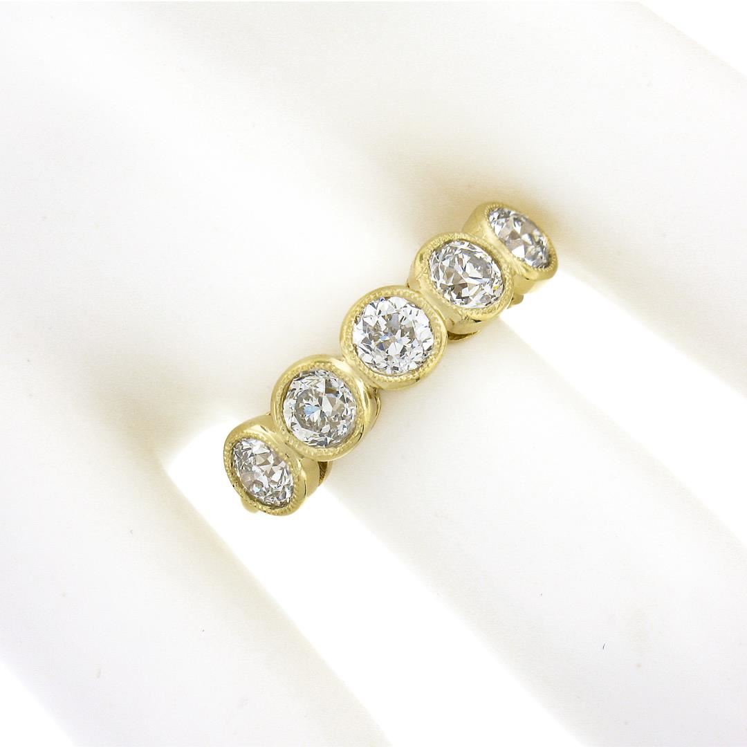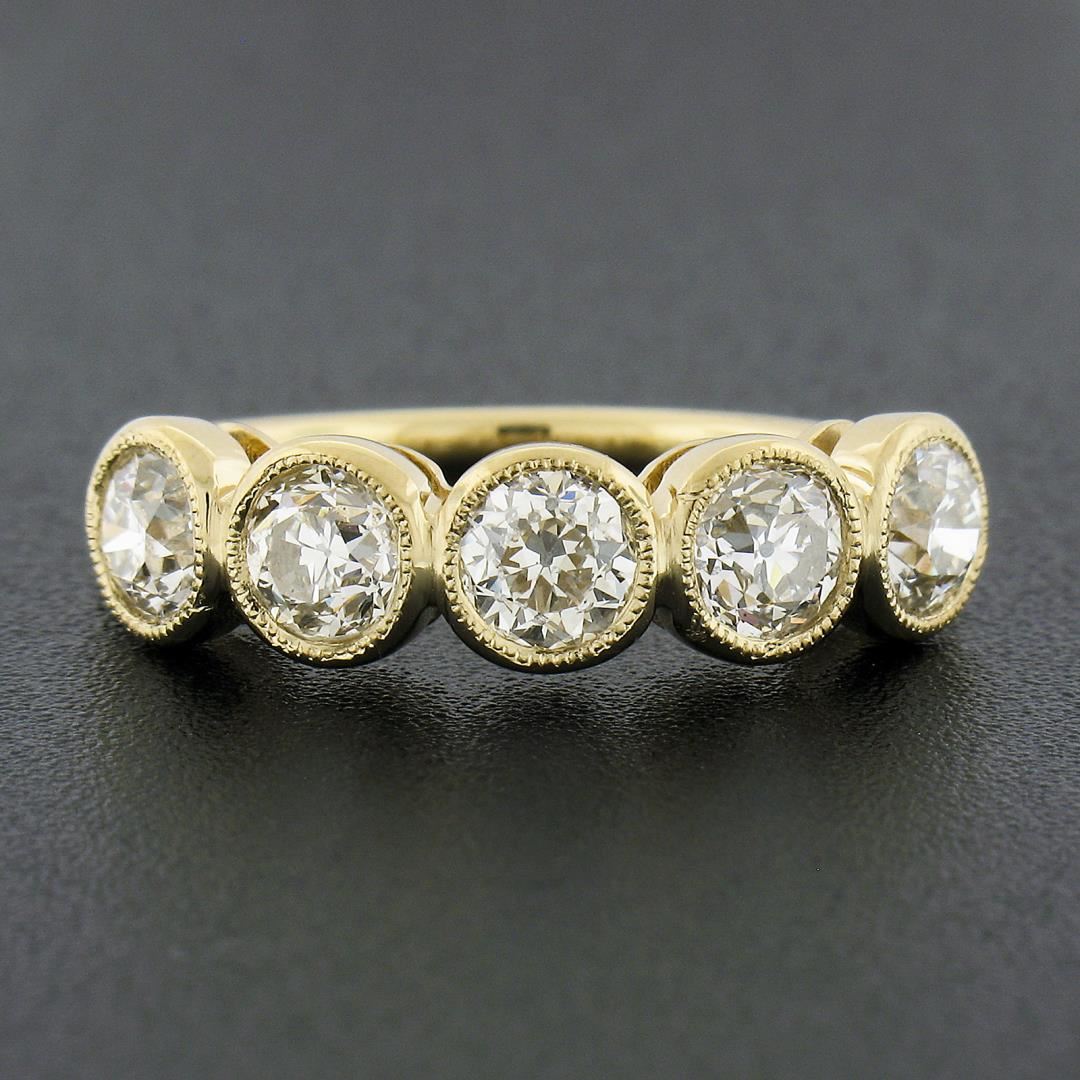 A new solid 18k yellow gold band ring, with 5 old european cut natural diamonds (G/I - VS1/VS2 & (1) SI1 ; 1.94ctw). The ring is size 6.5, weighs a total of 4.87 grams, and measures 5.65mm wide.